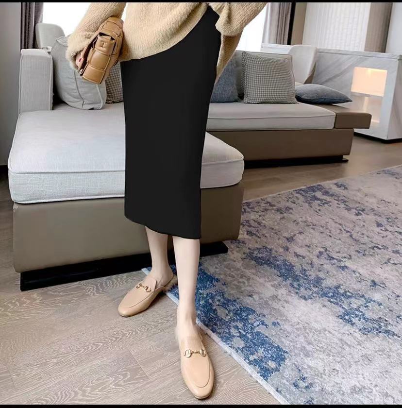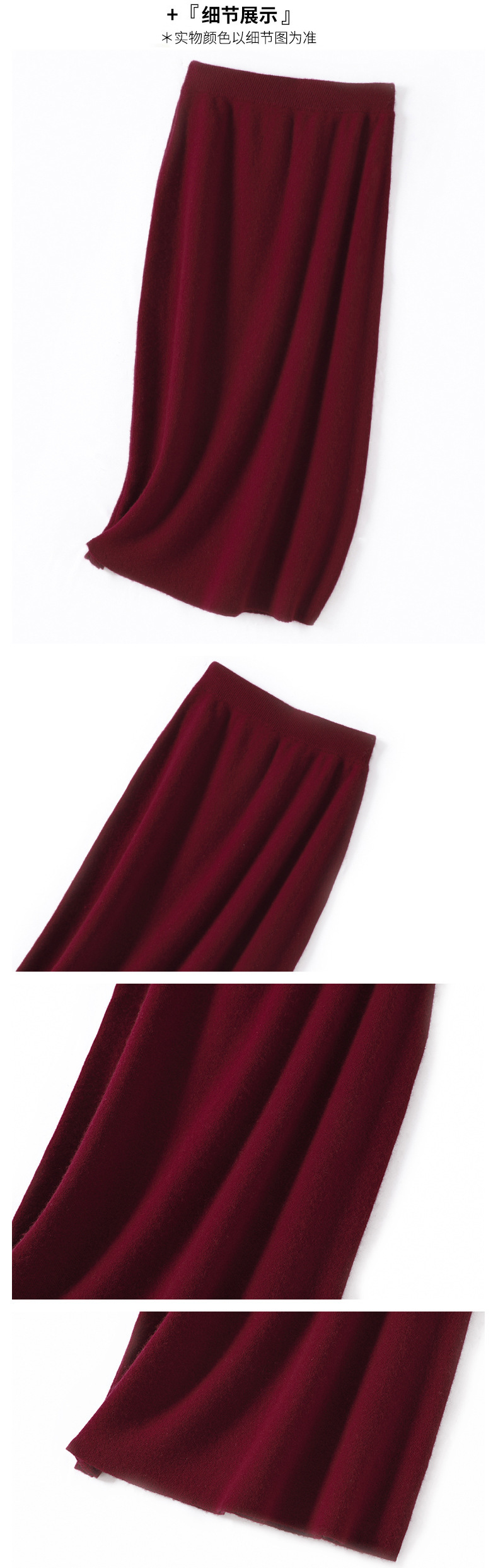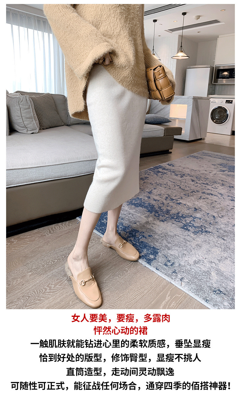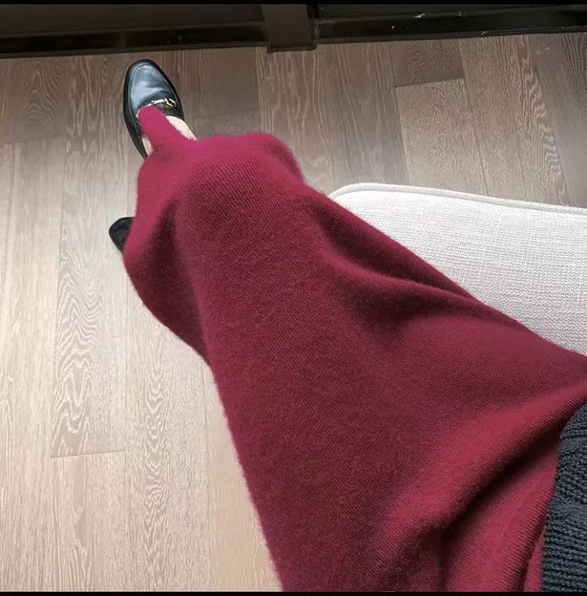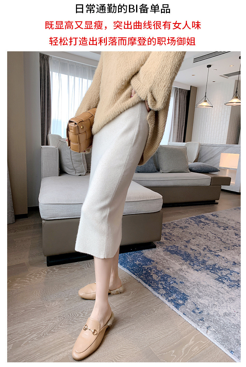 여성용 가을 겨울 스커트, 퓨어 캐시미어, 중간 길이, 루즈, 하이 웨이스트, 무릎 위, 힙 커버, 원스텝 스커트, 니트 스커트스토어 가기