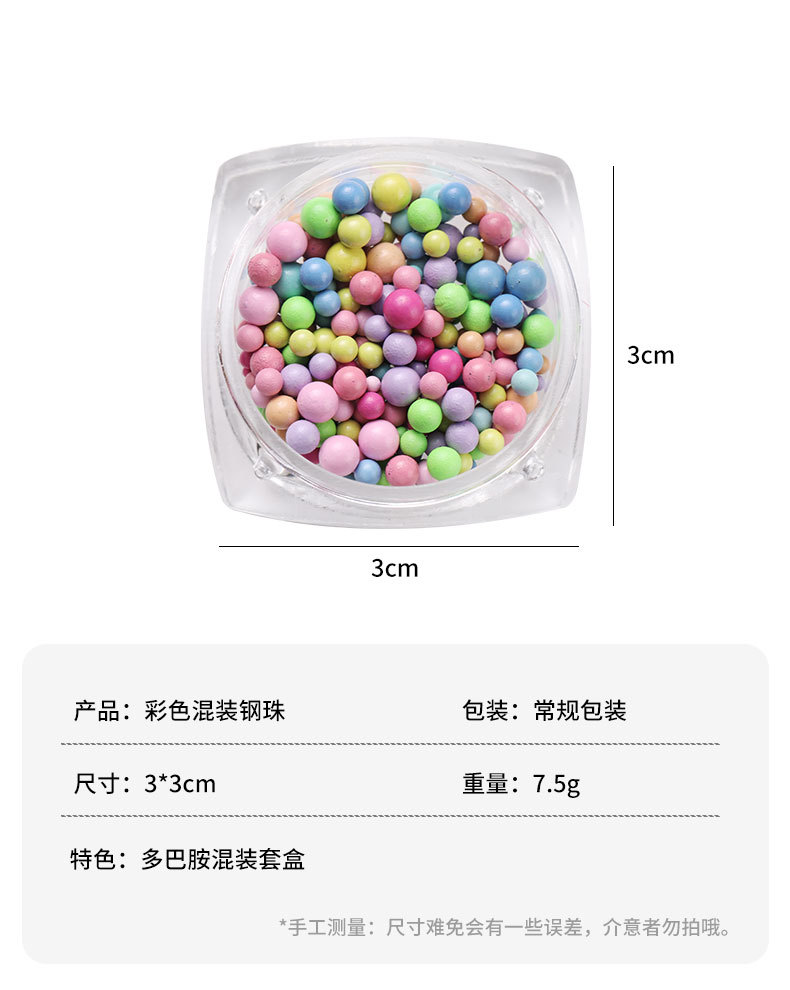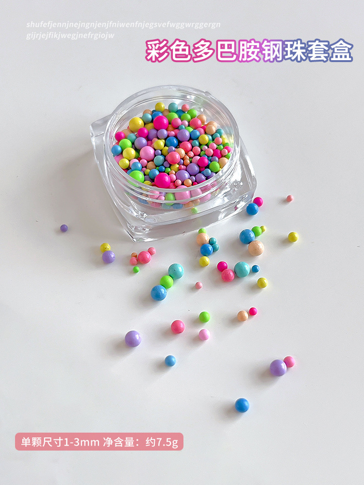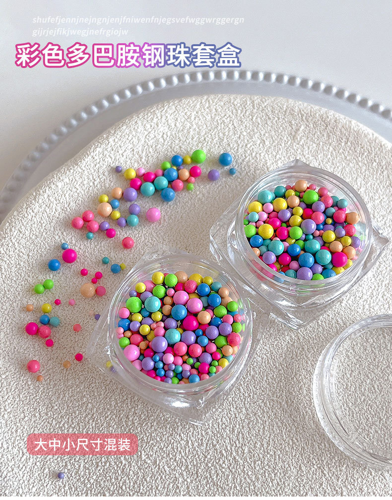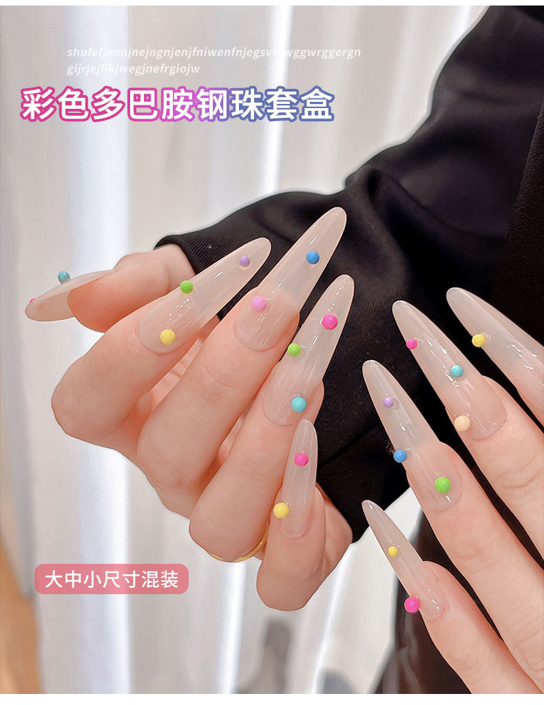 컬러 도파민 스틸 비즈 네일 아트 장식품 귀여운 레인보우 젤리 빈 사이즈 라운드 네일 세트 박스 장식품 도매스토어 가기