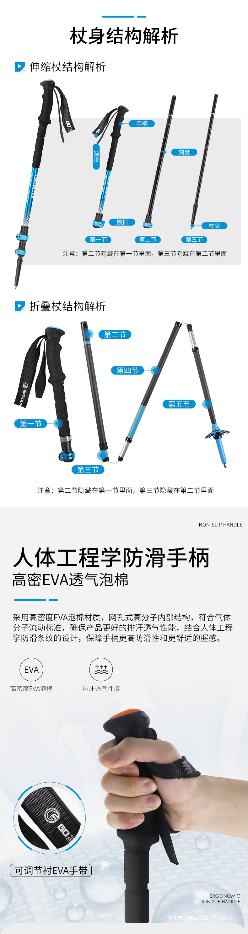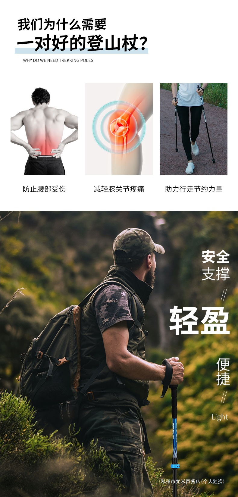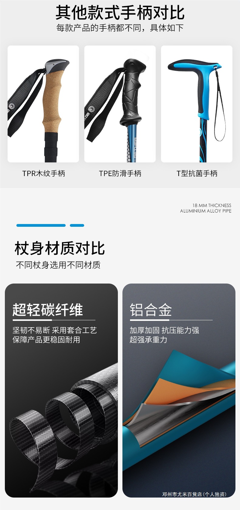 Yumi 트레킹 스틱 하이킹 알루미늄 합금 텔레스코픽 접이식 지팡이 야외 스포츠 휴대용 지팡이