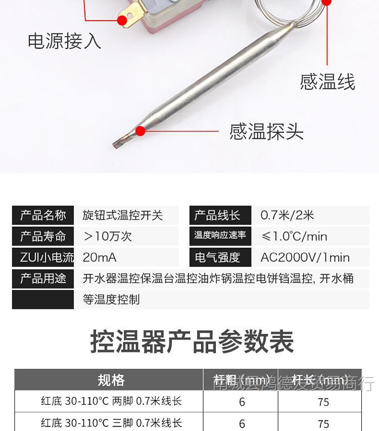 30-110도 50-300도 전기 오븐 튀김 오븐 손잡이 온도 조절기 60-200도 국수 수프 냄비 온도 조절 스위치