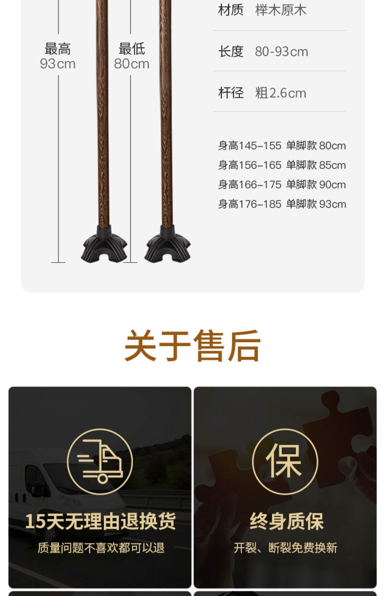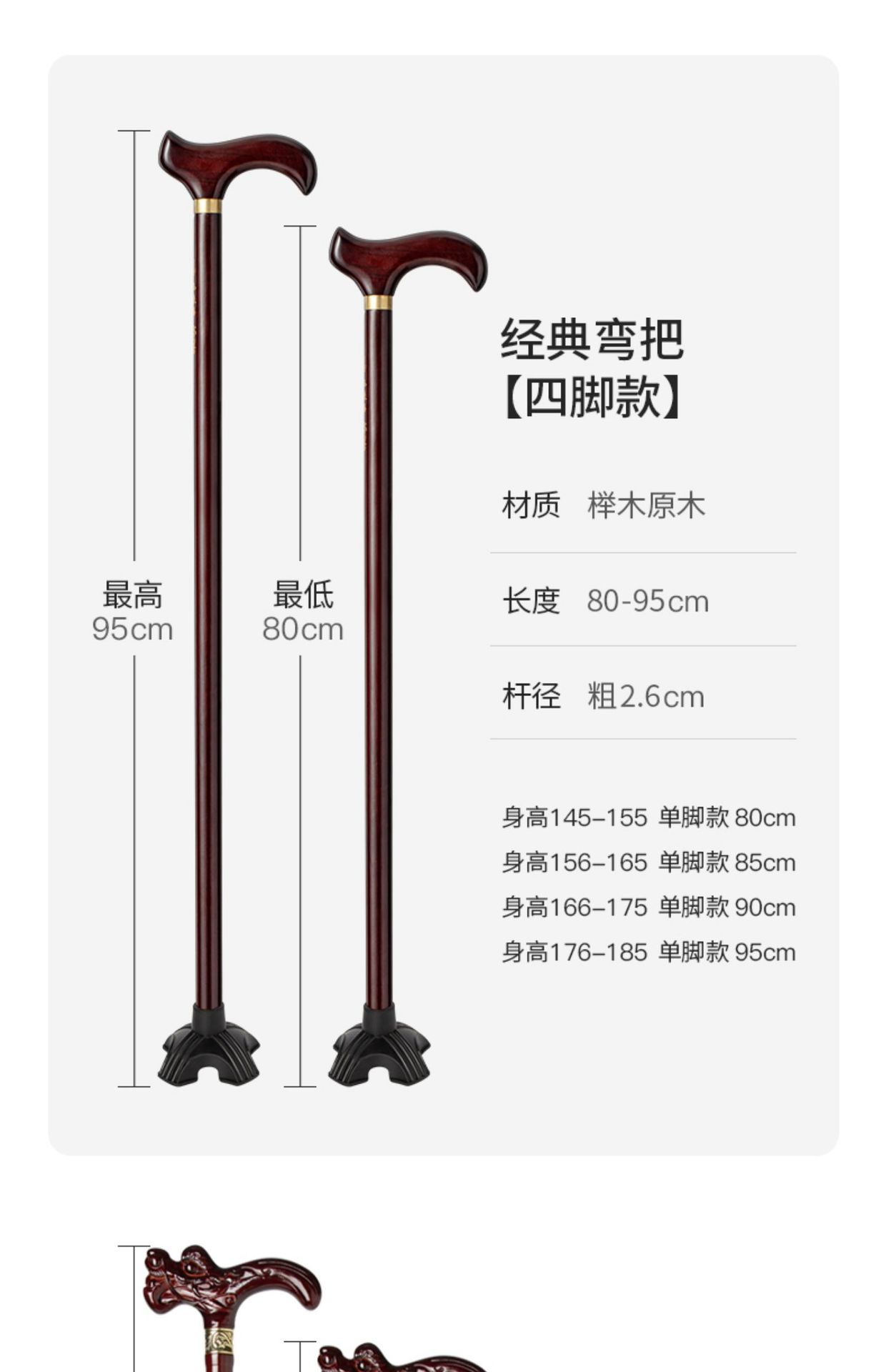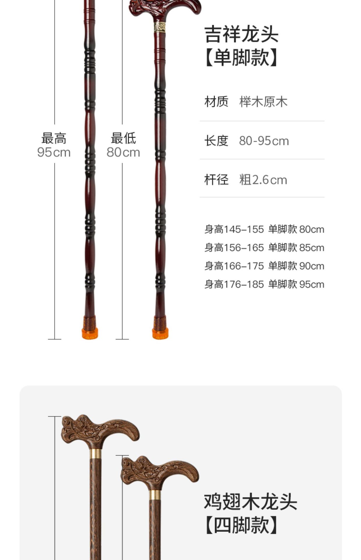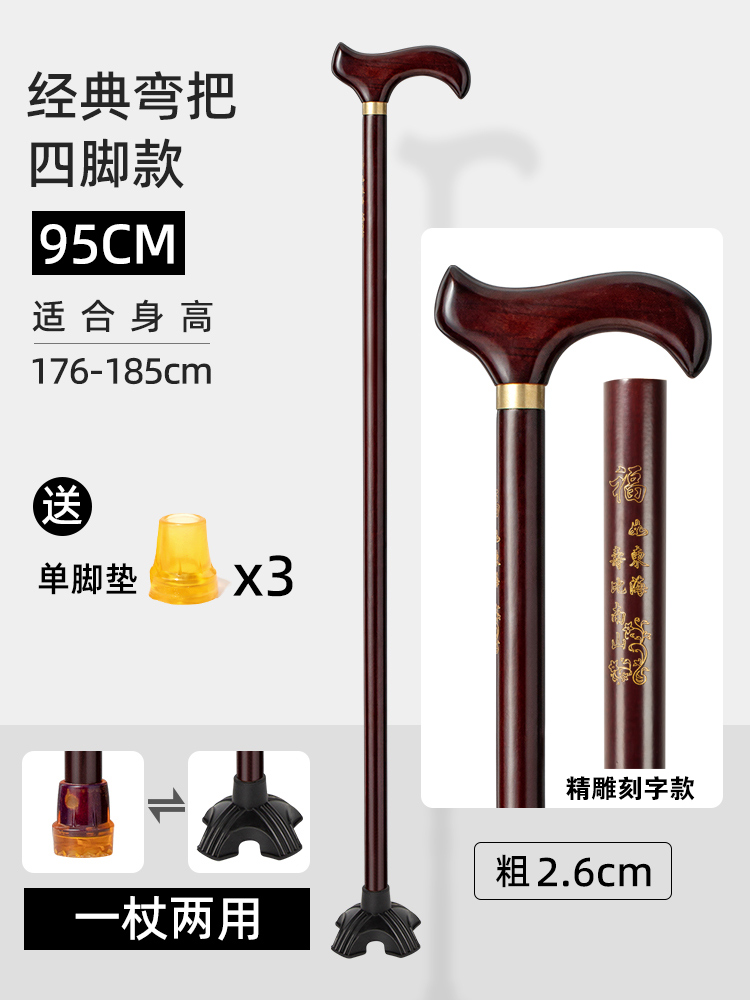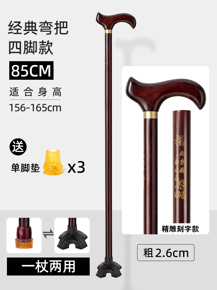 노인용 나무 지팡이, 4발 미끄럼 방지 나무 지팡이, 노인용 경량 지팡이, 수도꼭지 지팡이, 안락한 지팡이
