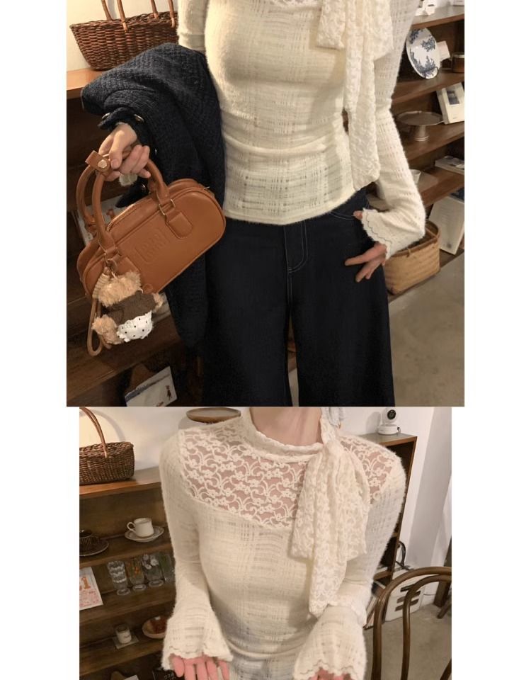 플러스 사이즈 여성 순수한 욕망 스타일 보우 레이스 긴팔 티셔츠 2025 가을 새로운 뚱뚱한 MM 흰색 바닥 셔츠 탑스토어 가기