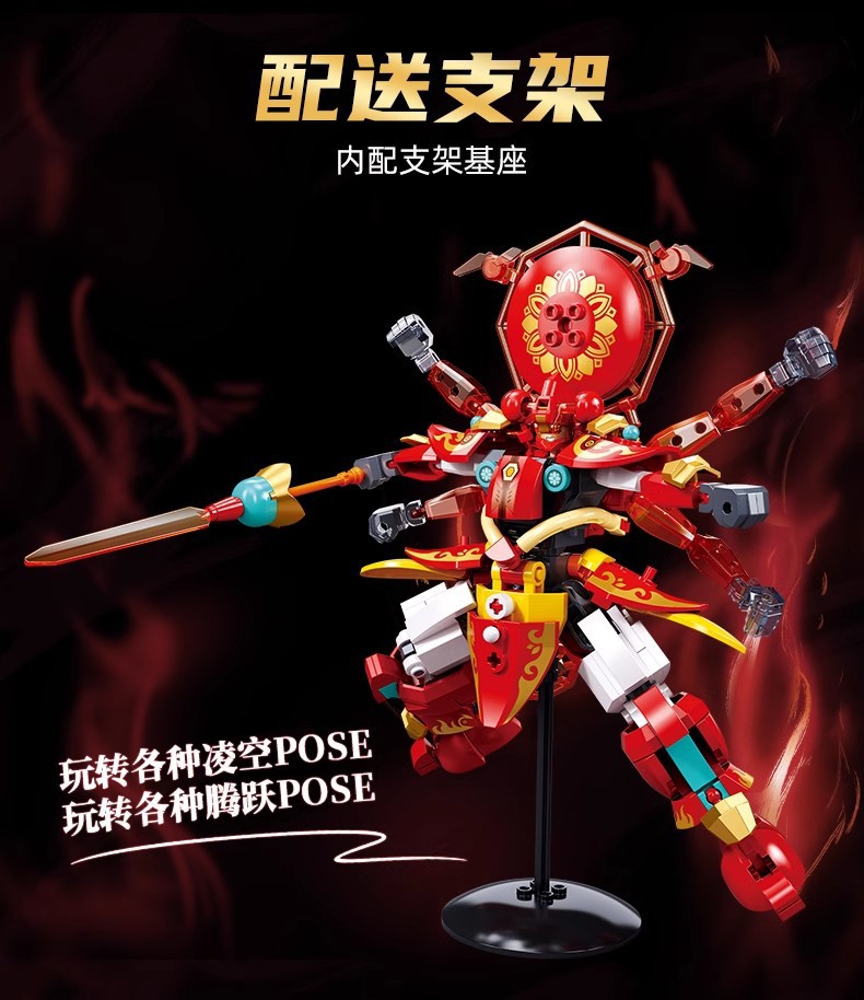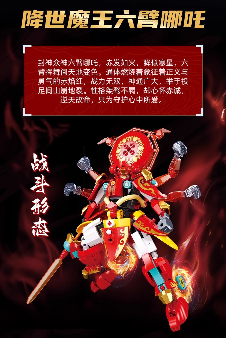 Little Luban 빌딩 블록 Fengshen Gods Nezha 메카 조립 모델 장식품 어린이 로봇 소년 장난감 선물