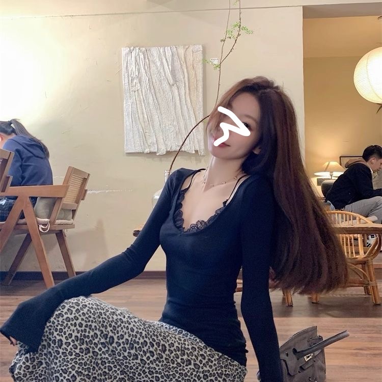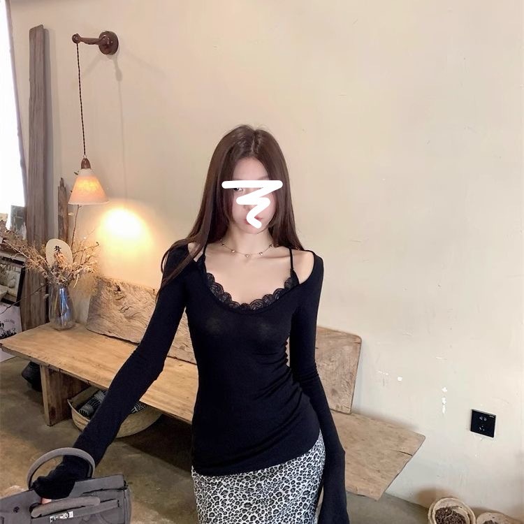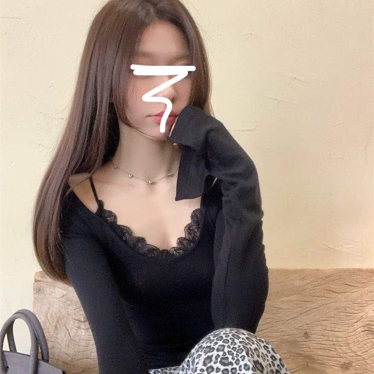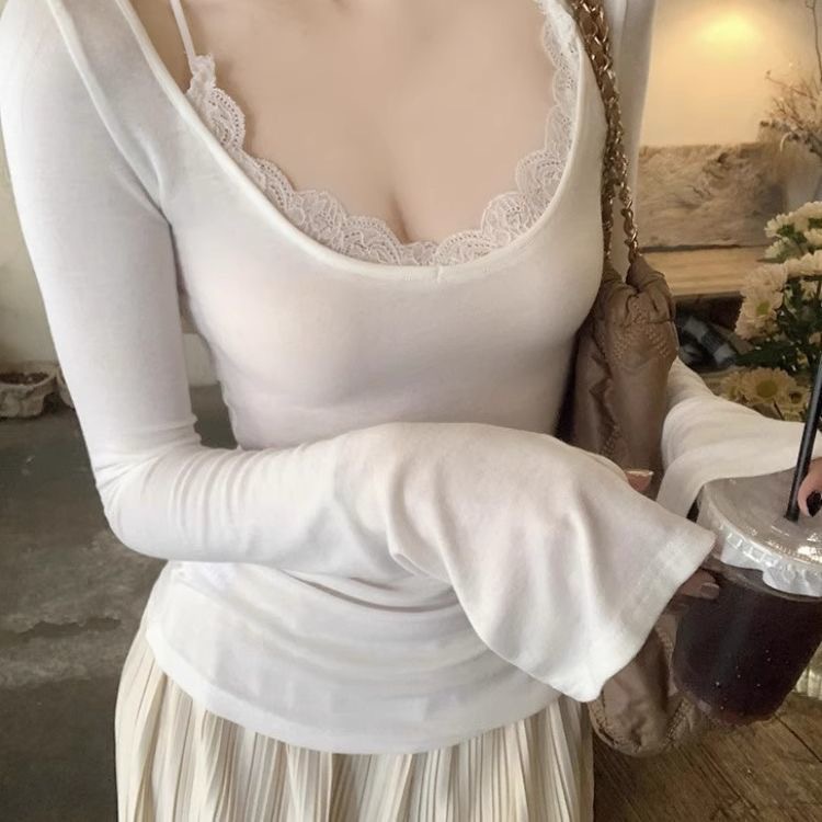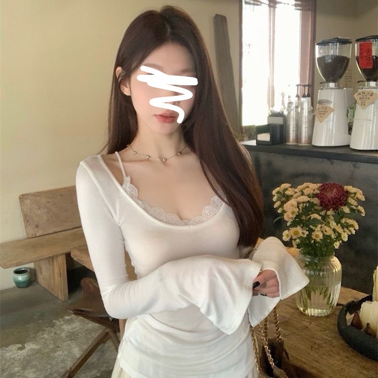 한국식 화이트 페이크 투피스 티셔츠 여성 봄과 가을 새로운 독특한 레이스 레이스 스위트 스파이스 소녀 얇은 탑