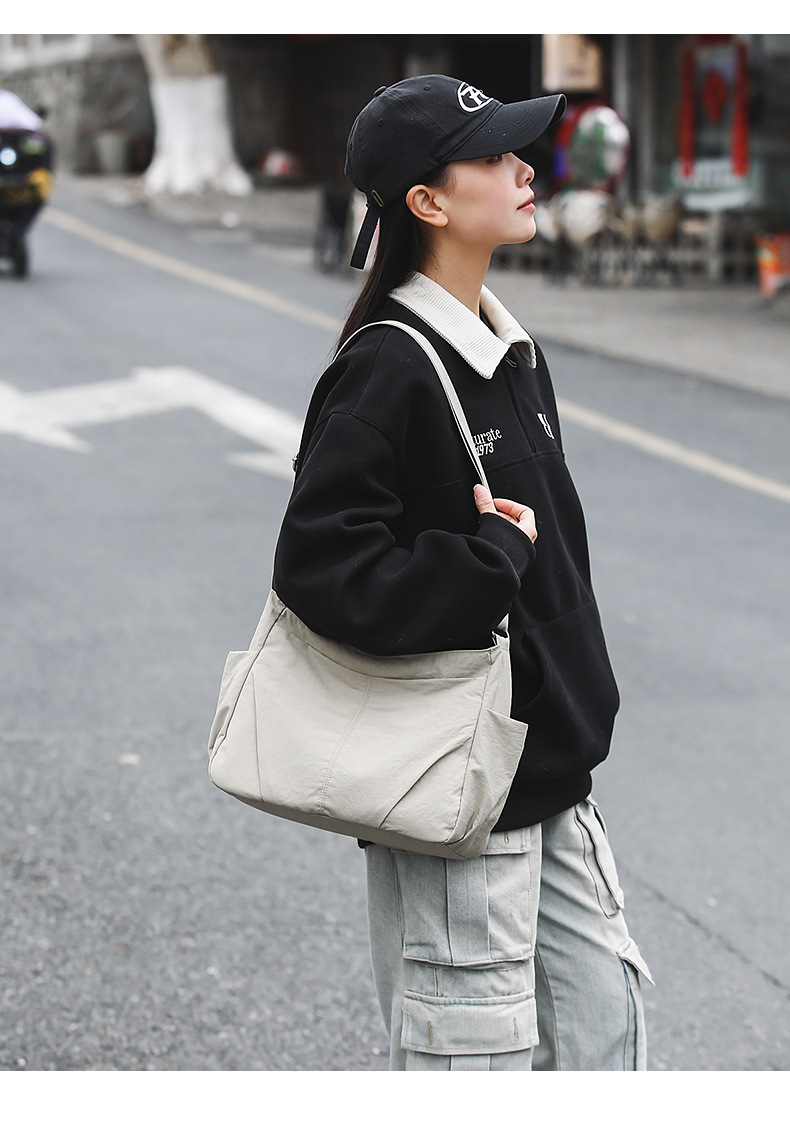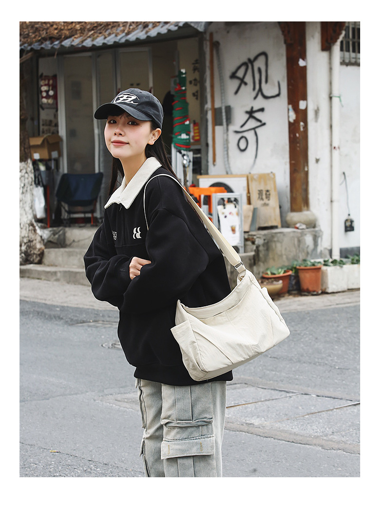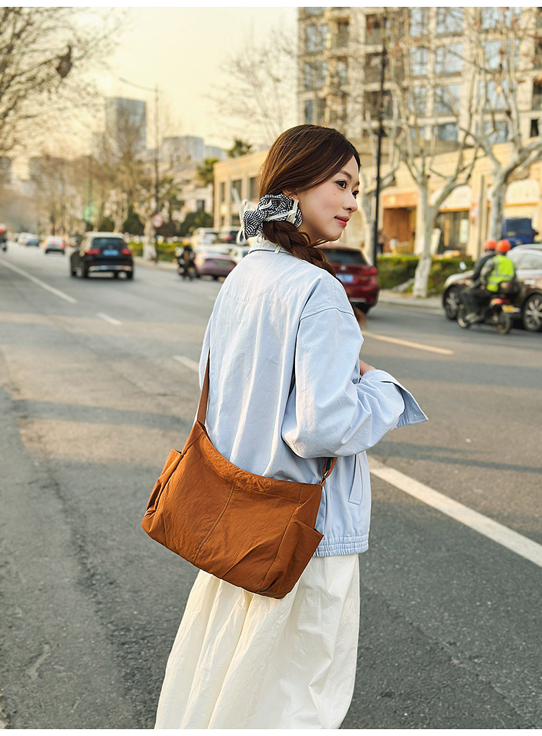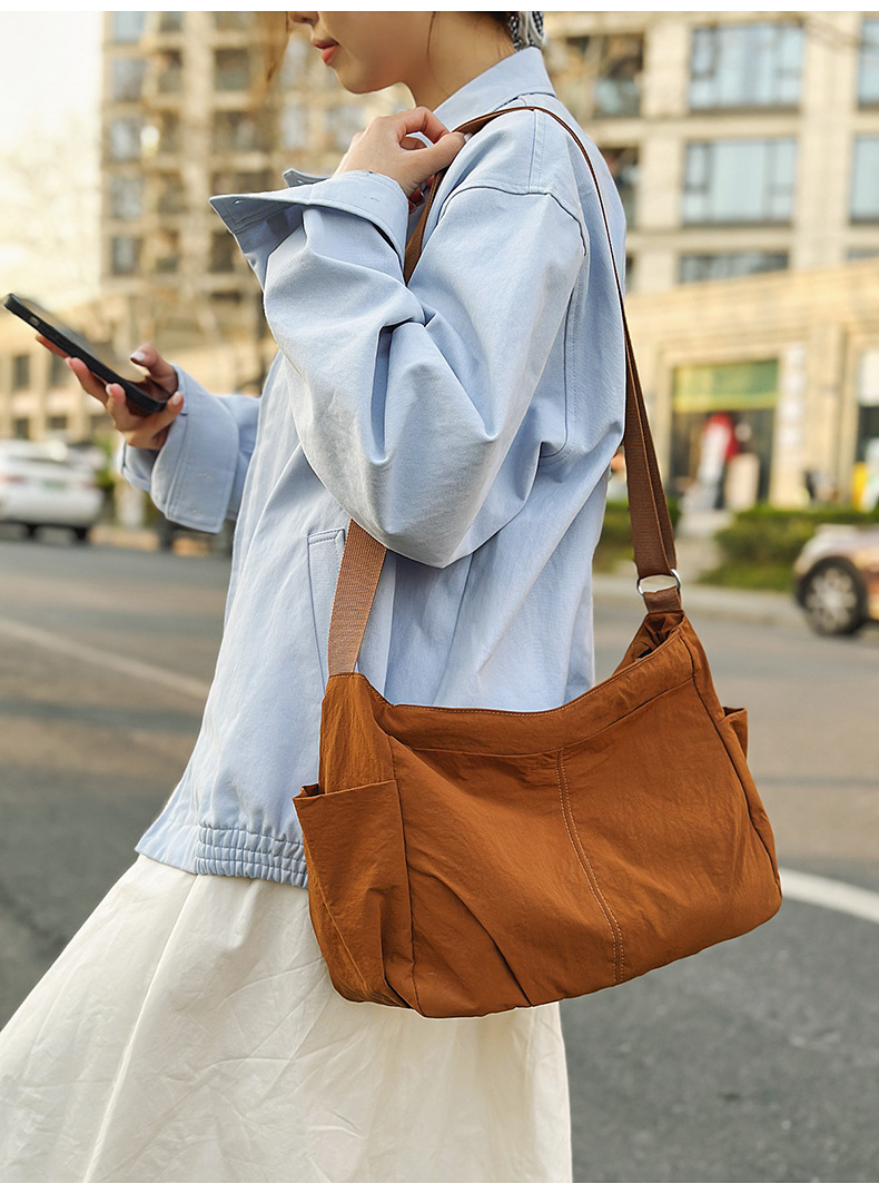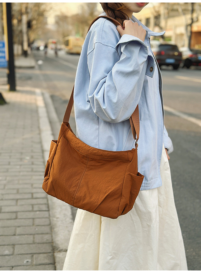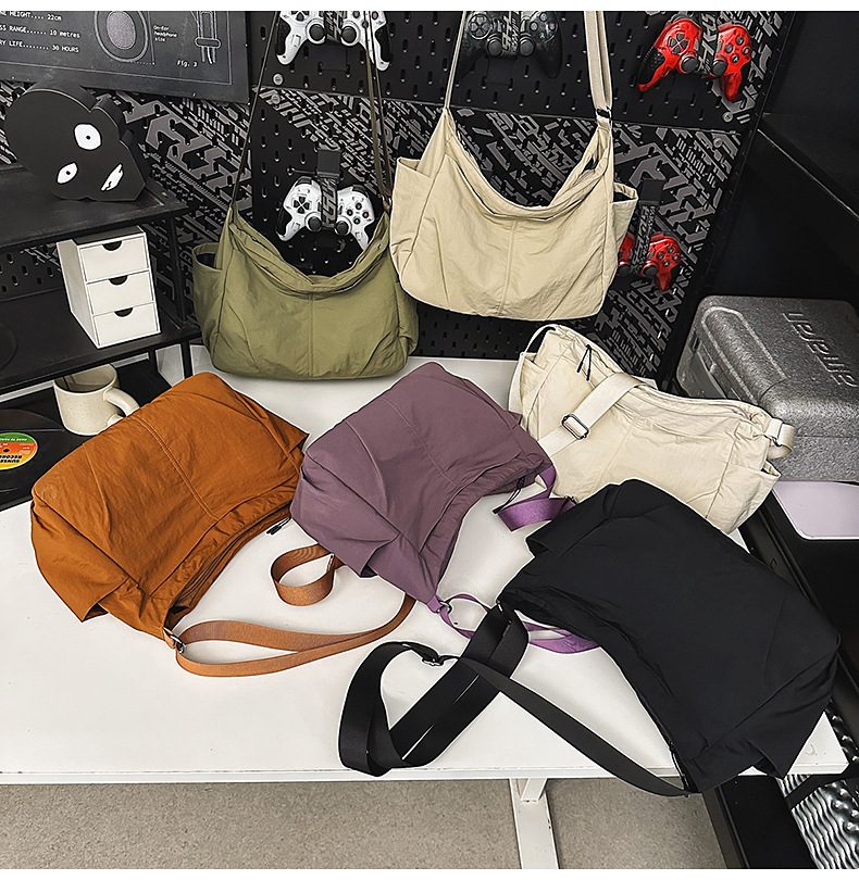 국경 간 단색 나일론 천 토트 백 캐주얼 다용도 여성용 크로스 바디 백 통근 단순 대외 무역 숄더 백