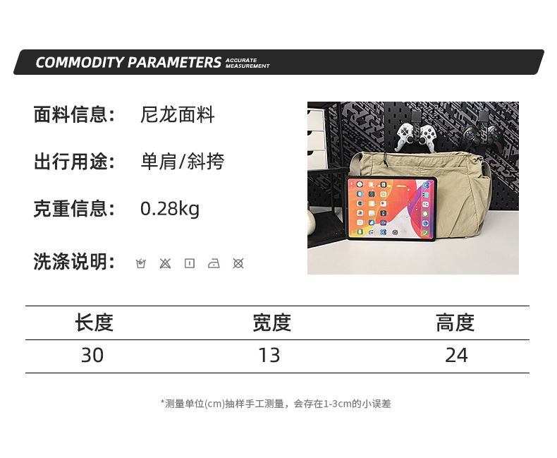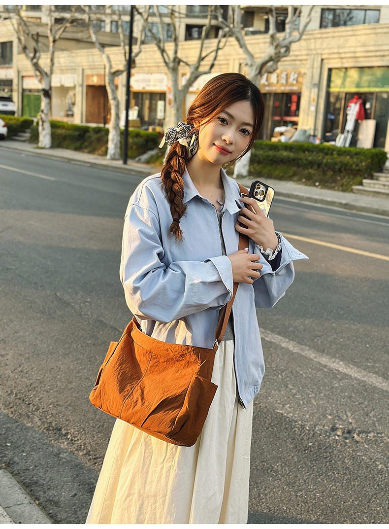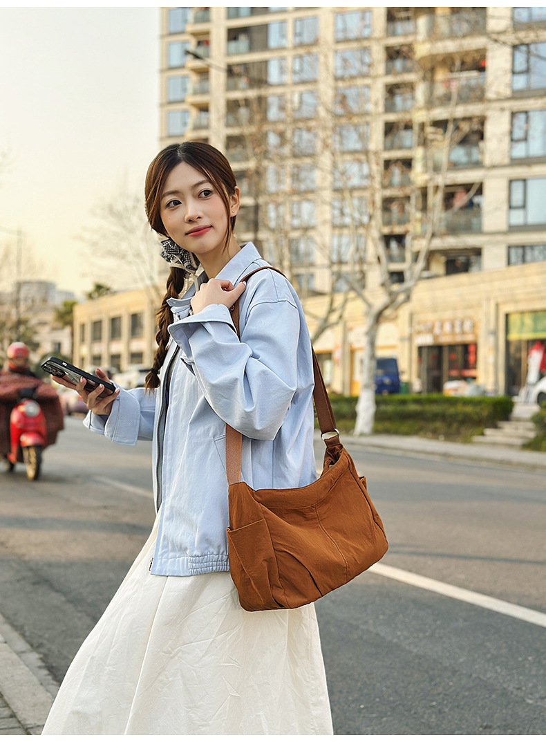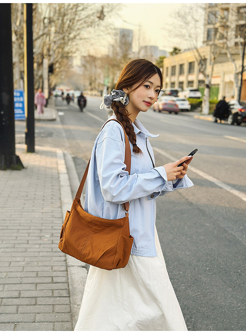 국경 간 단색 나일론 천 토트 백 캐주얼 다용도 여성용 크로스 바디 백 통근 단순 대외 무역 숄더 백스토어 가기