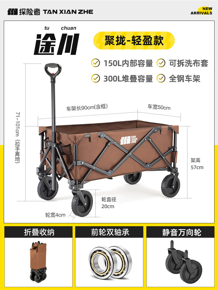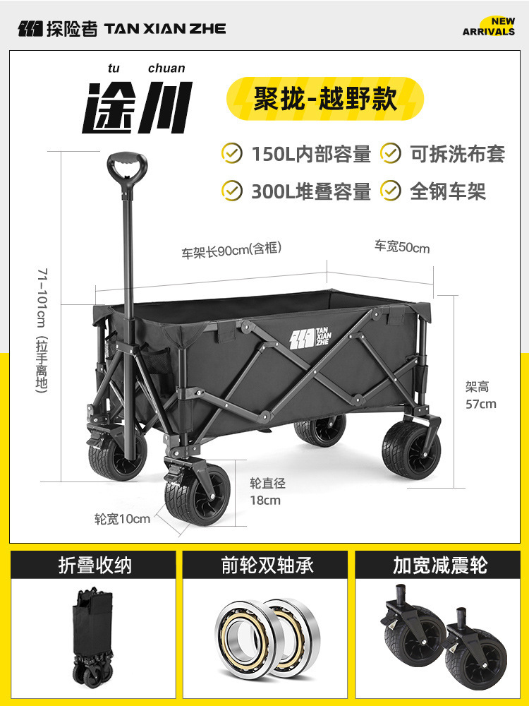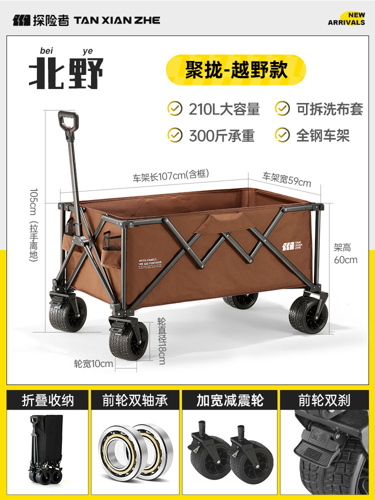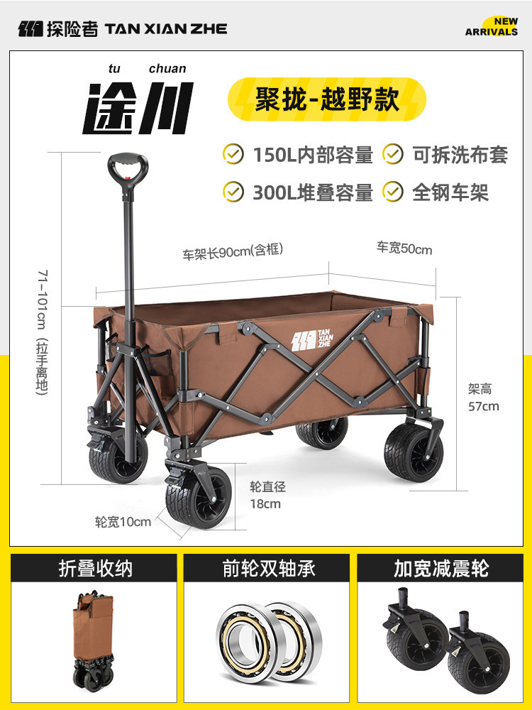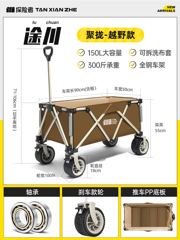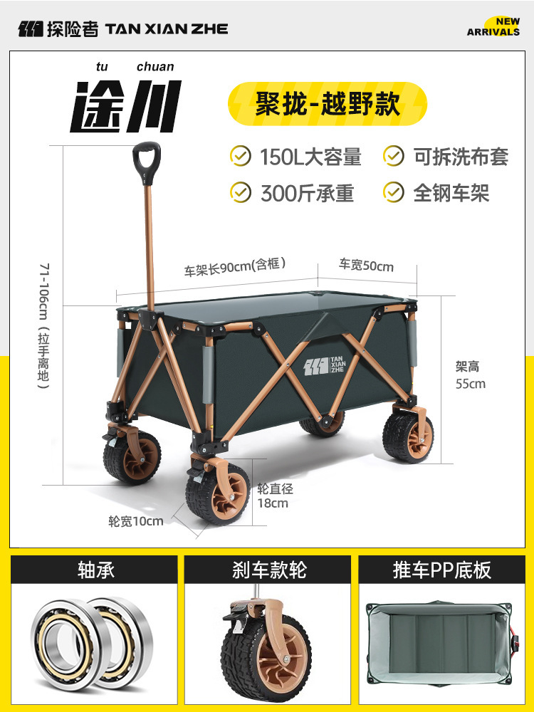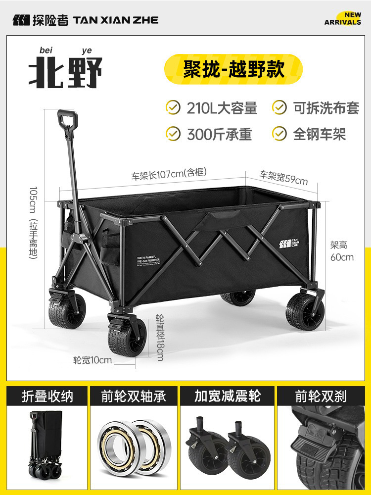 探险者露营推车可折叠户外野餐超大营地手推车拉车便携野营小拖车