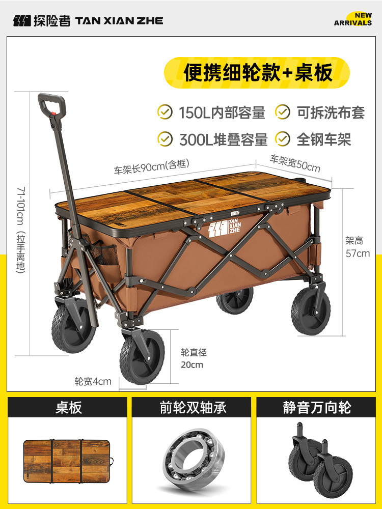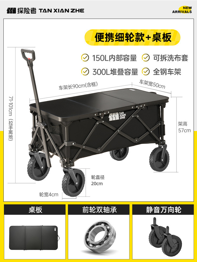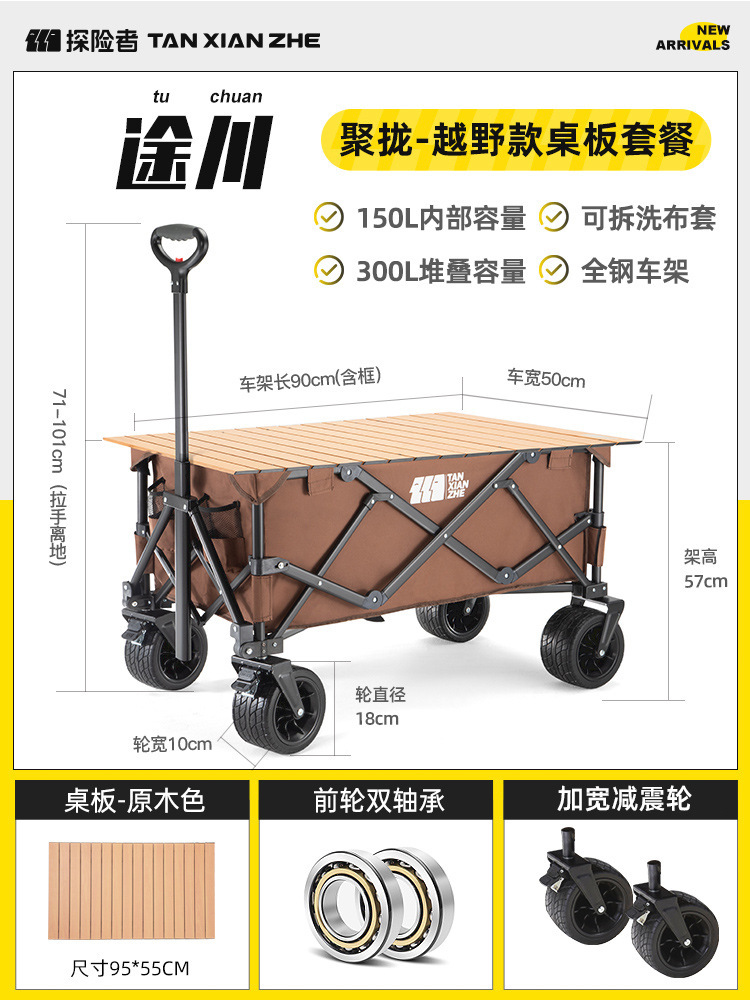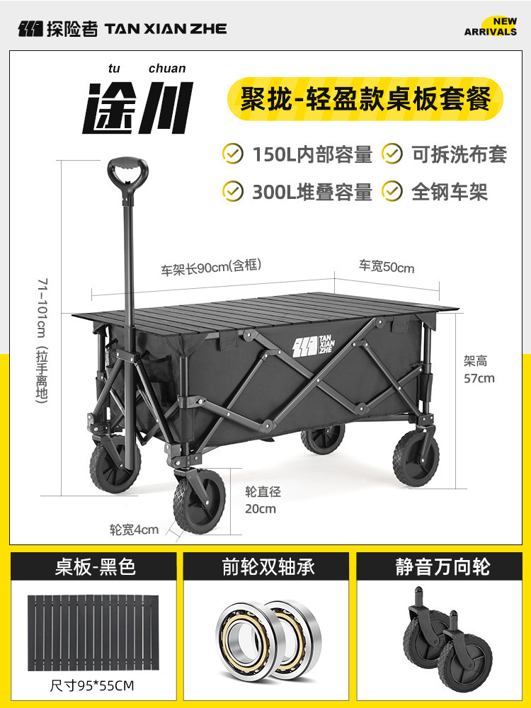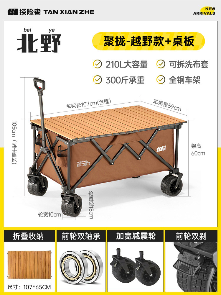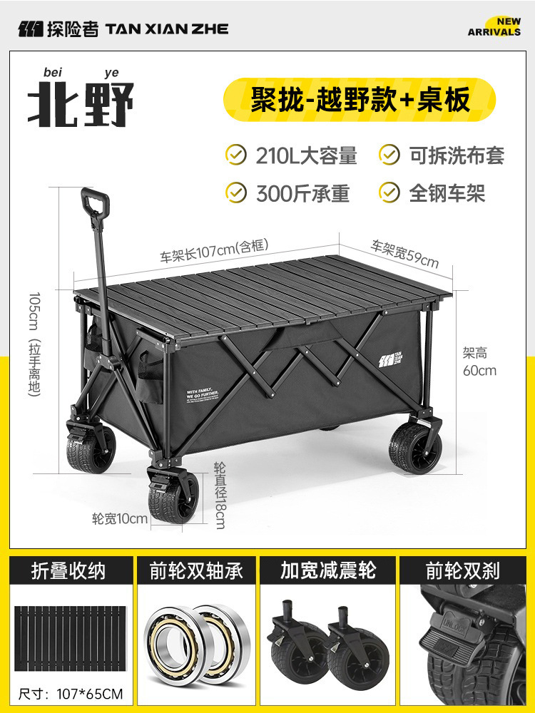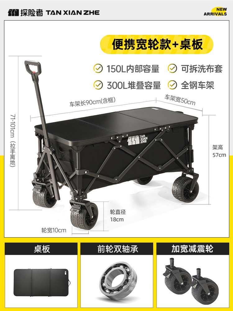 探险者露营推车可折叠户外野餐超大营地手推车拉车便携野营小拖车