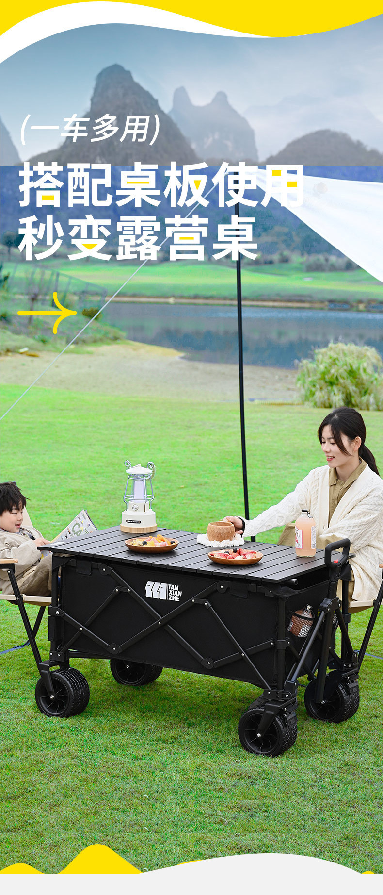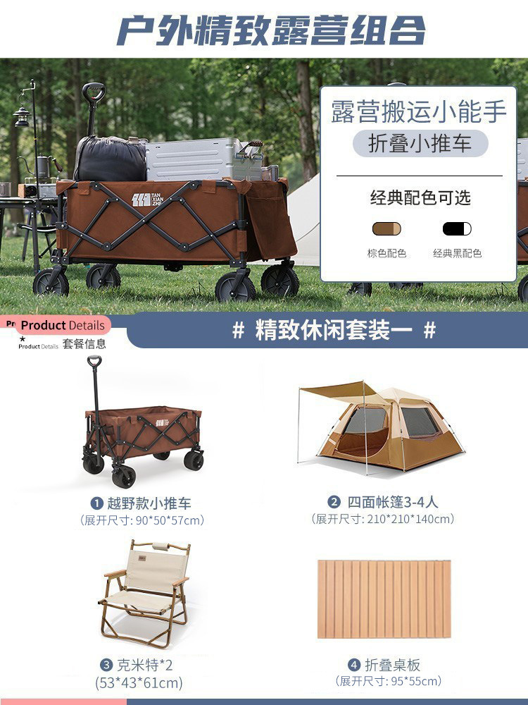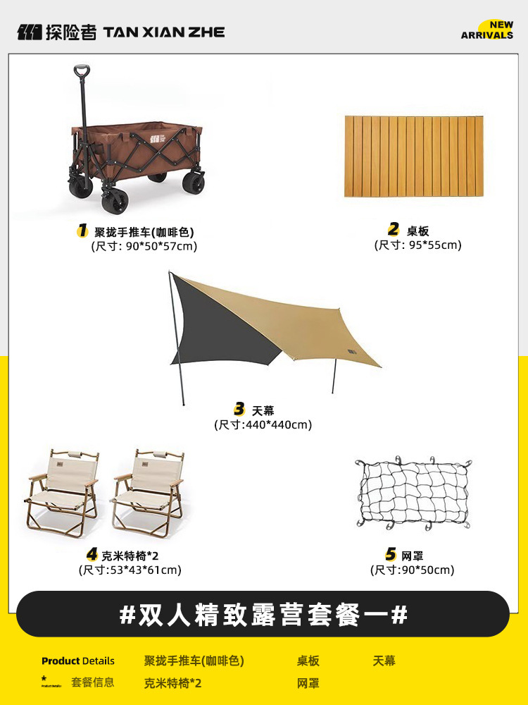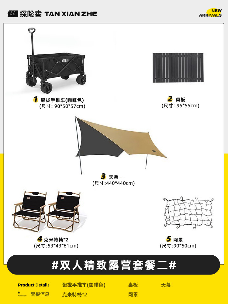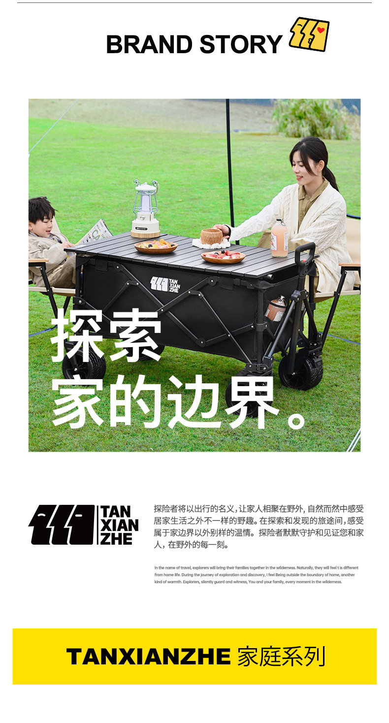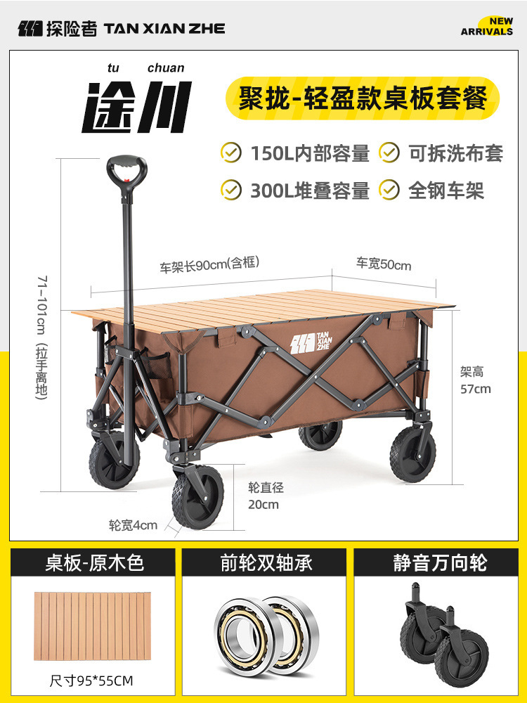 探险者露营推车可折叠户外野餐超大营地手推车拉车便携野营小拖车