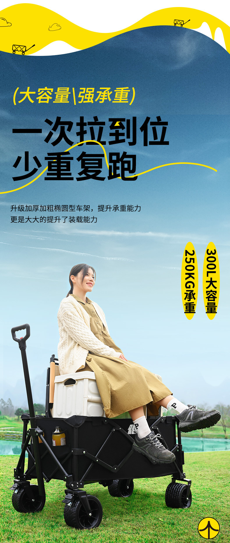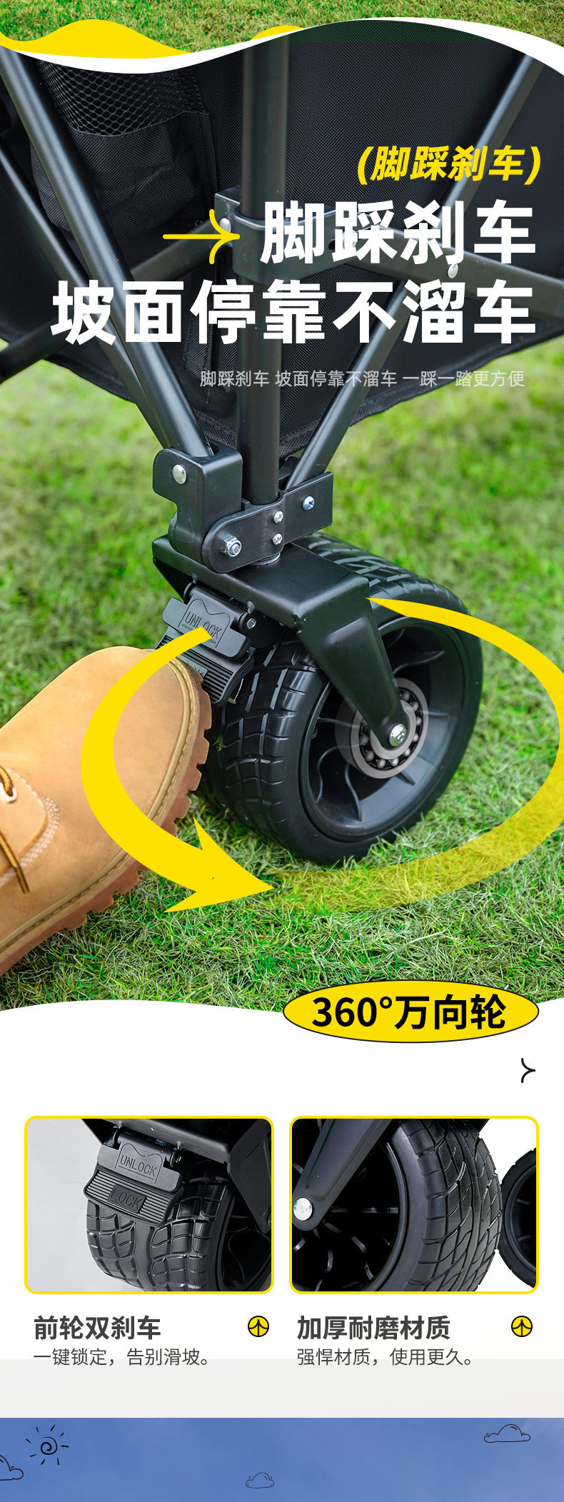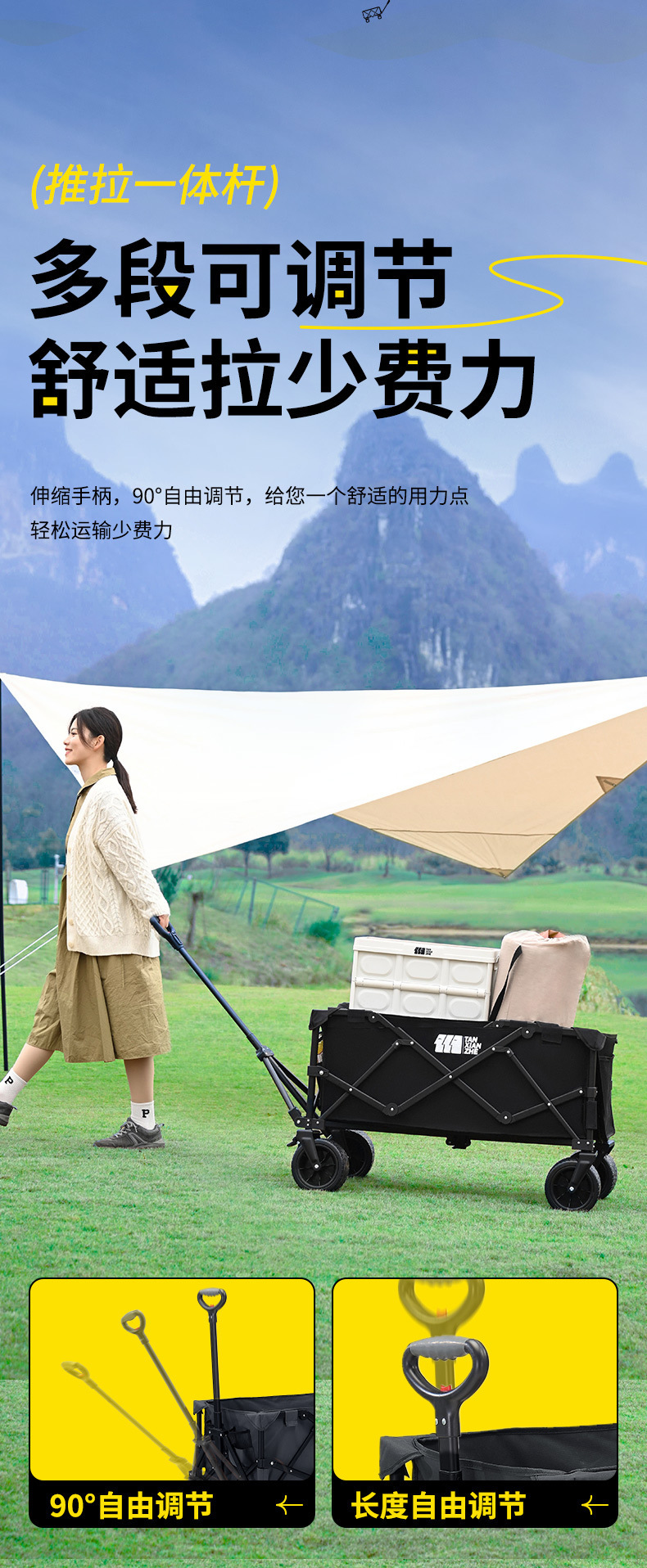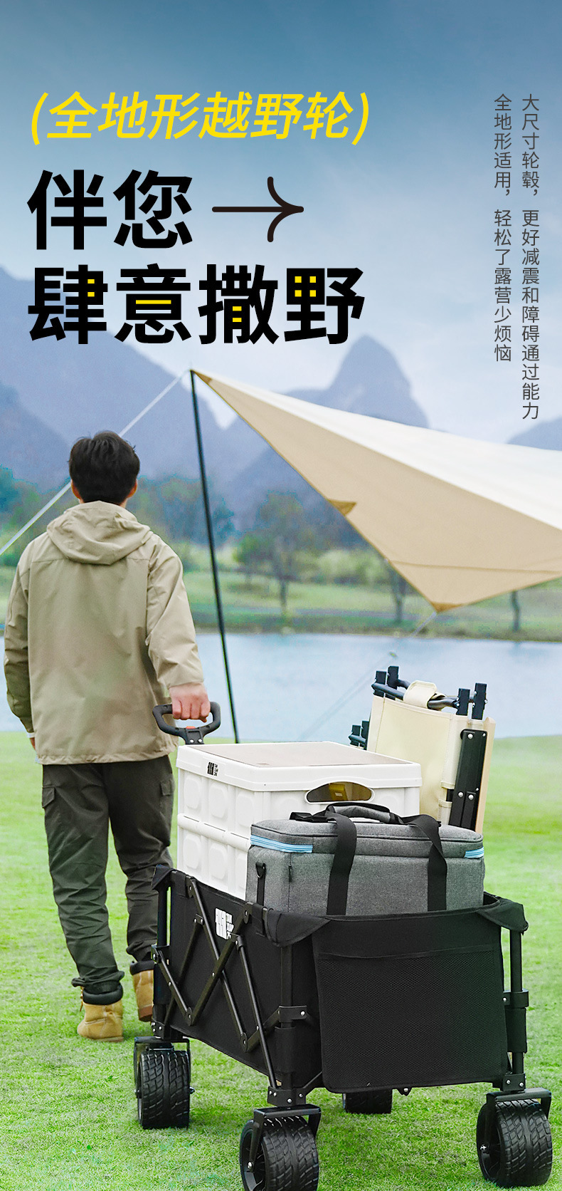 探险者露营推车可折叠户外野餐超大营地手推车拉车便携野营小拖车