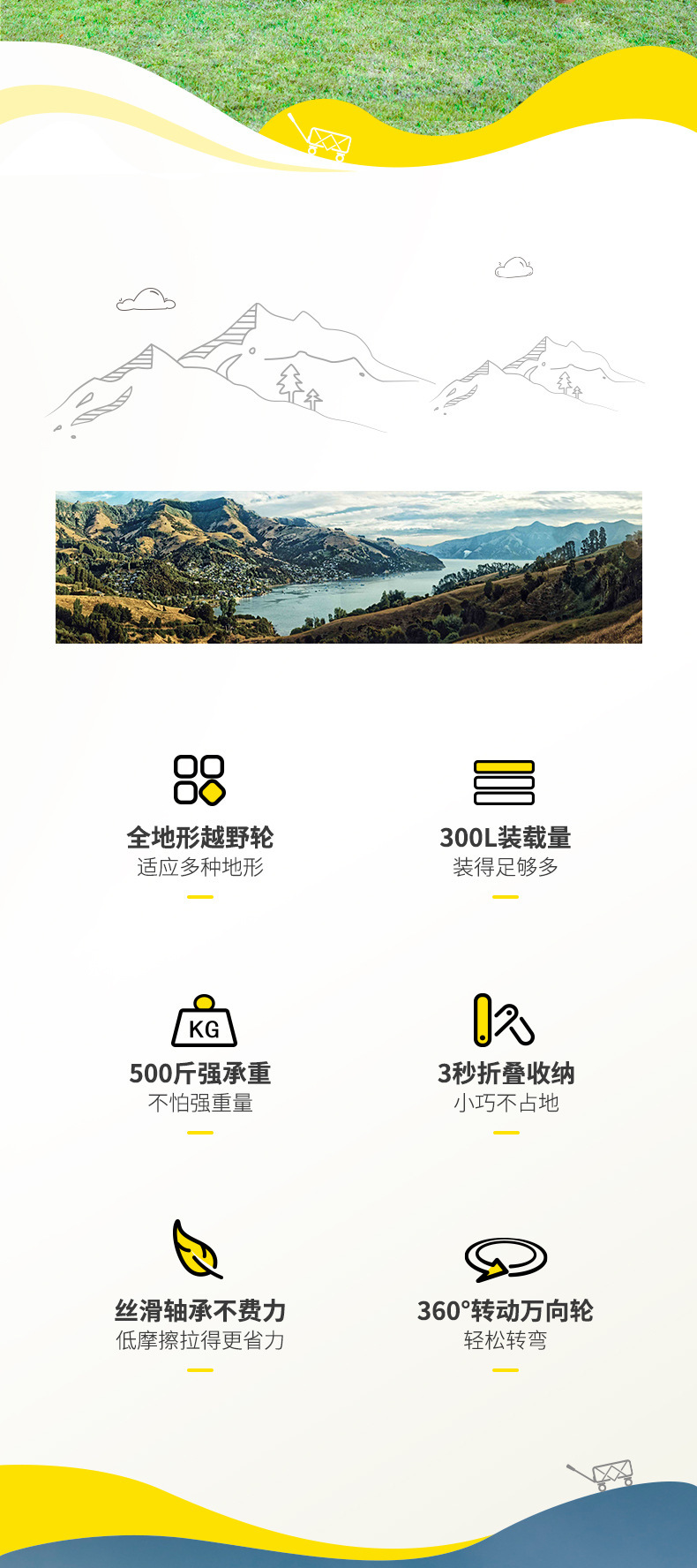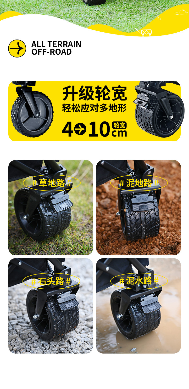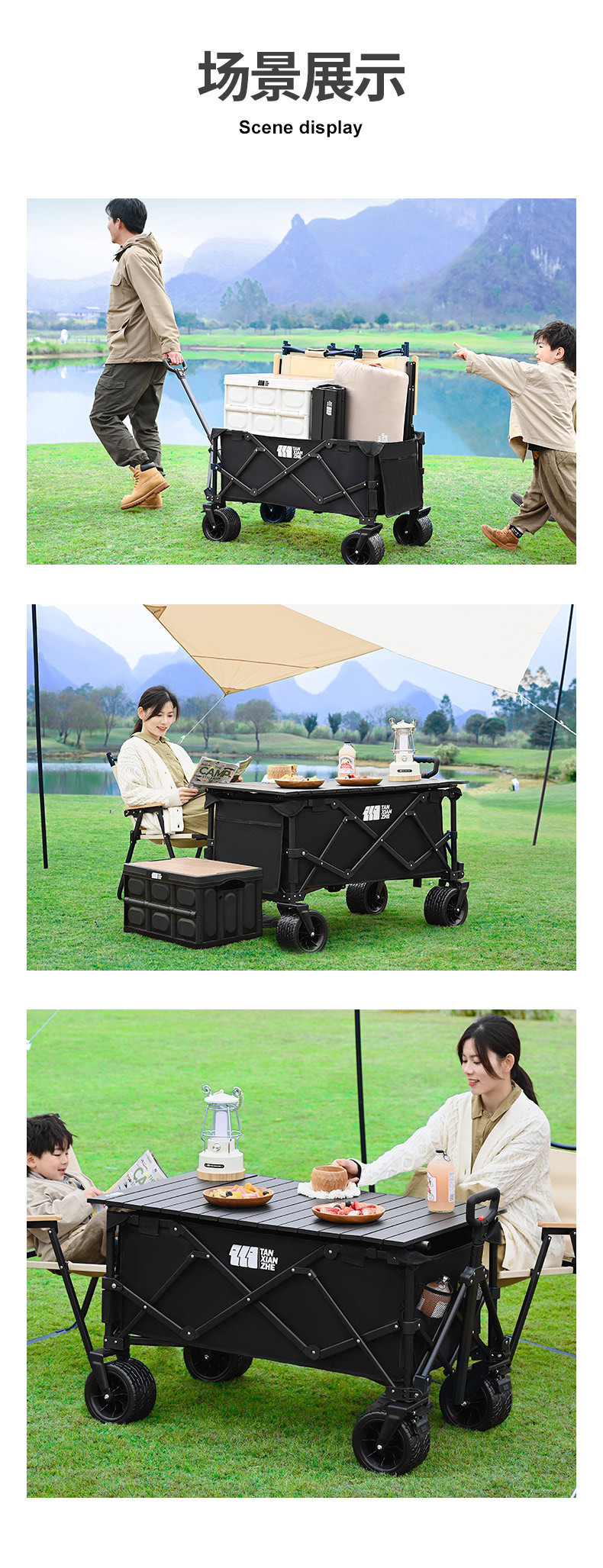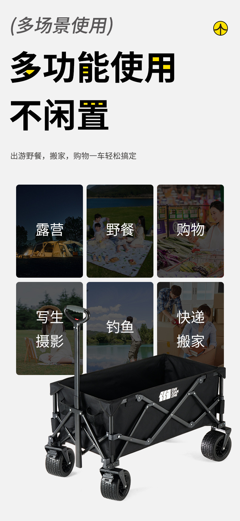 探险者露营推车可折叠户外野餐超大营地手推车拉车便携野营小拖车