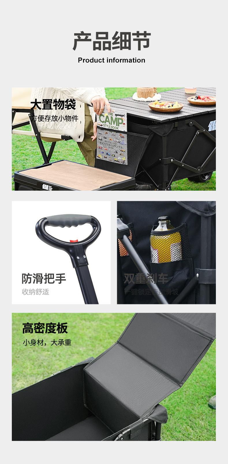 탐험가 캠핑 트롤리 접이식 야외 피크닉 대형 캠프 트롤리 휴대용 캠핑 트레일러