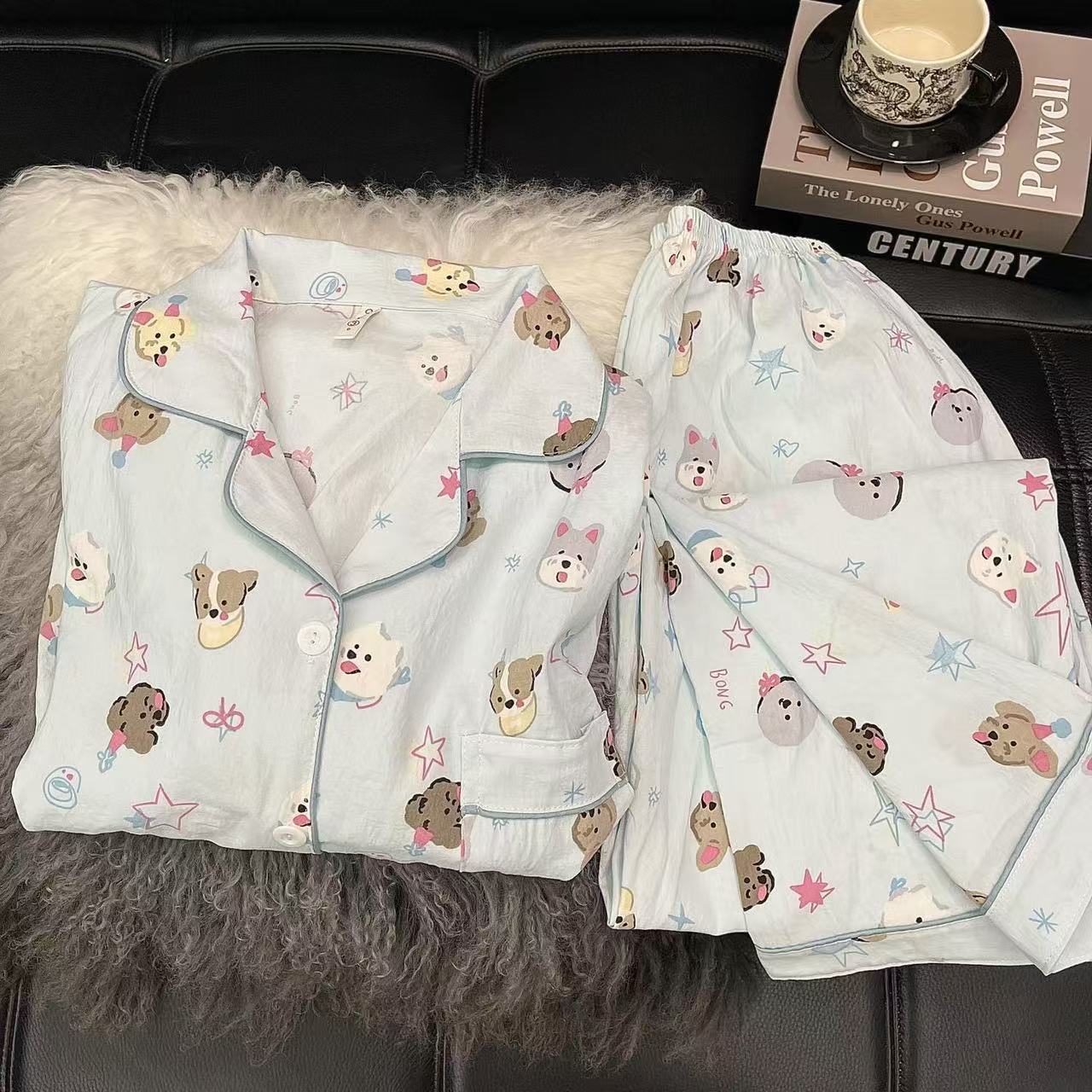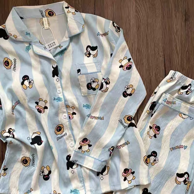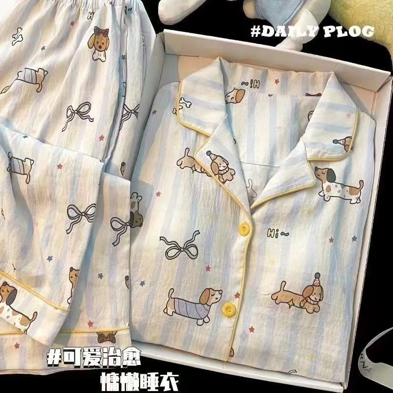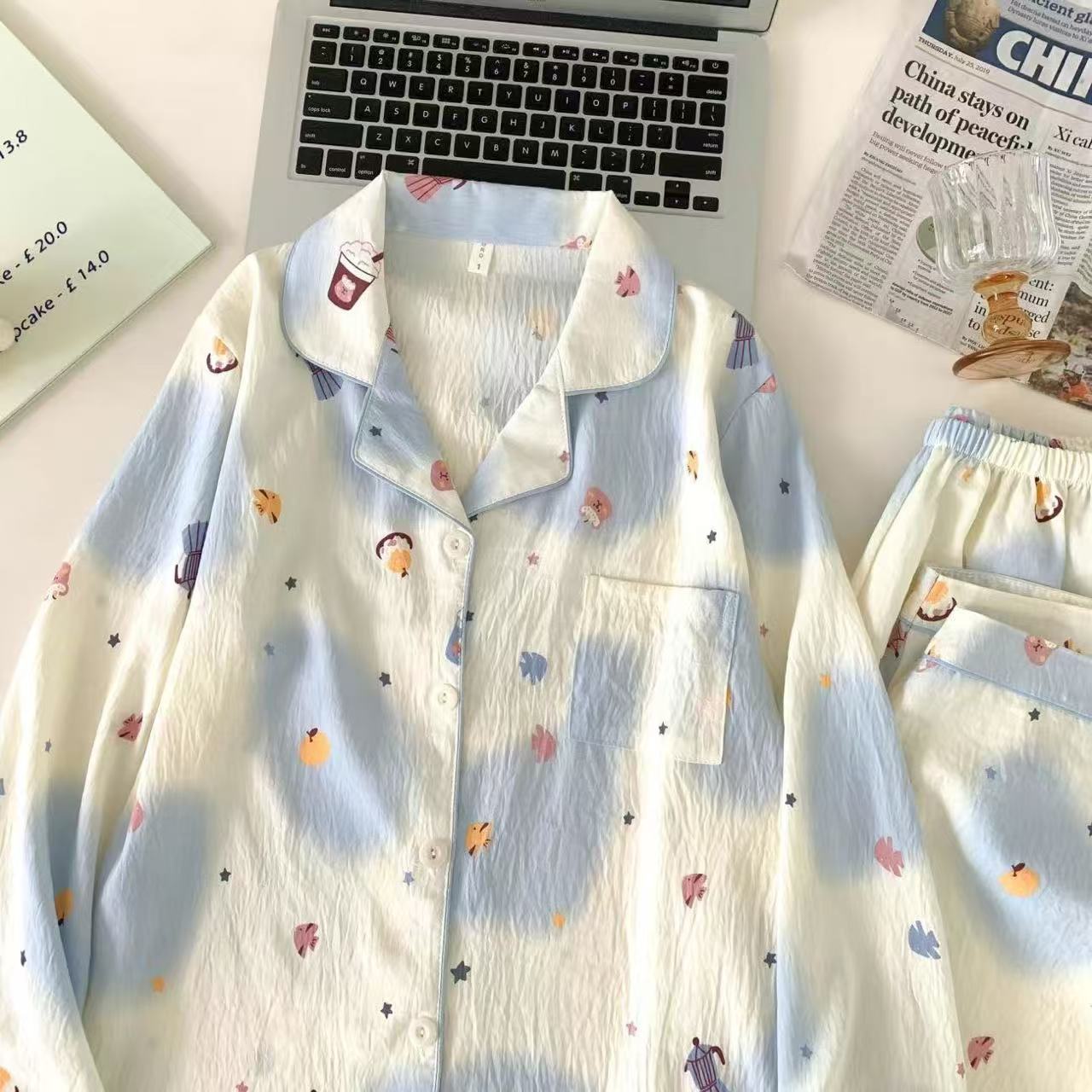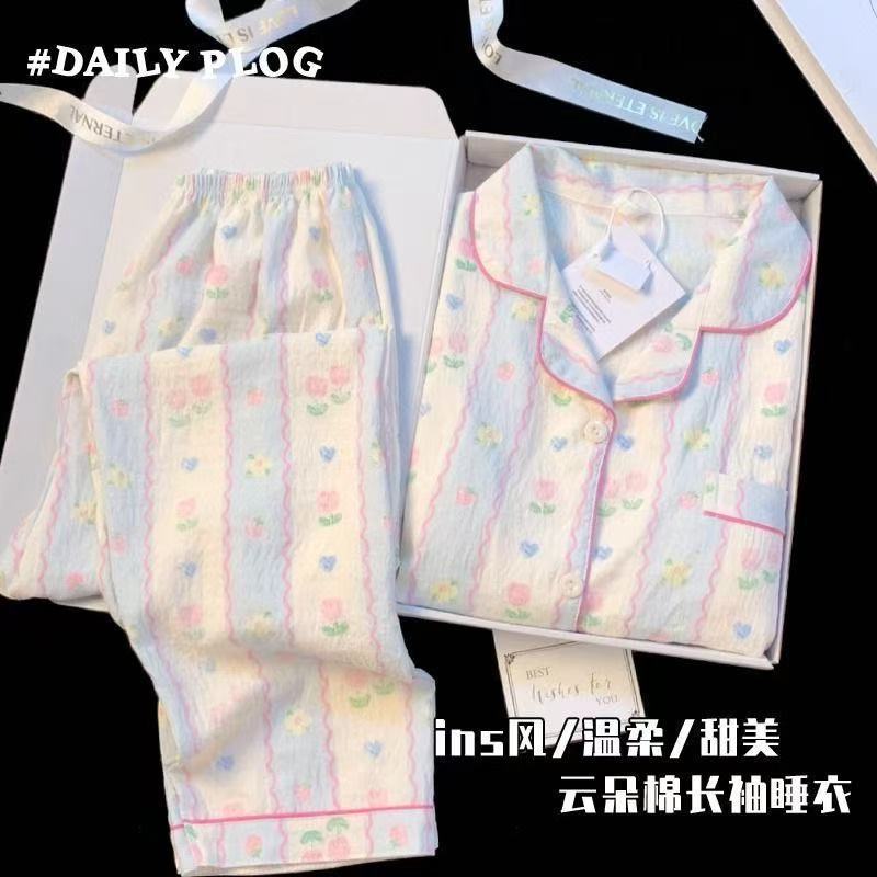Ins 일본식 만화 곰 잠옷 봄과 가을 여성의 2025 새로운 도착 의상 긴 소매 줄무늬 귀여운 홈 옷스토어 가기