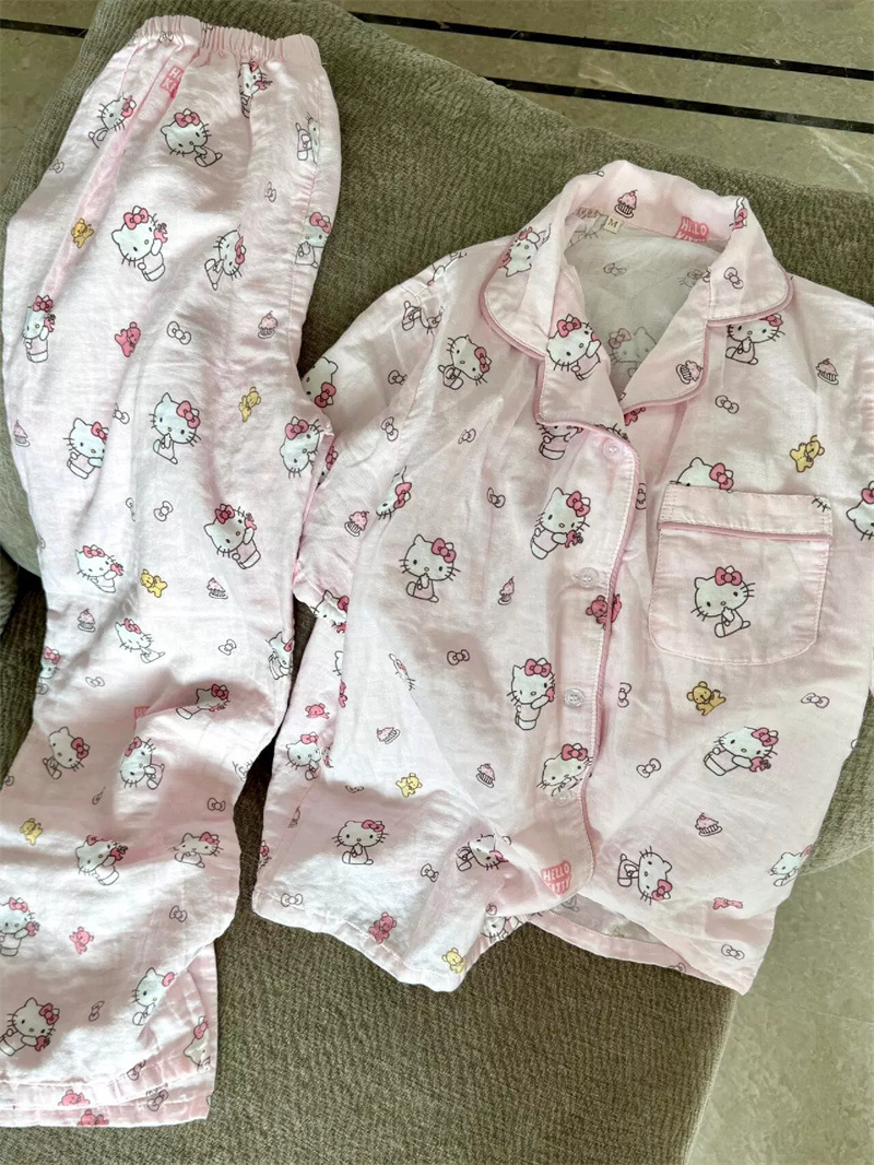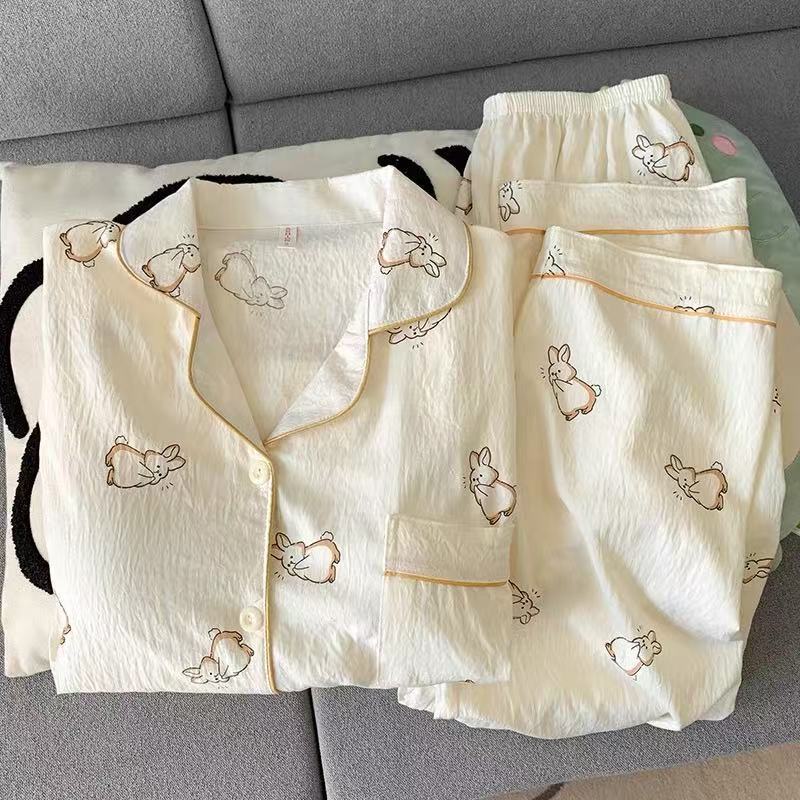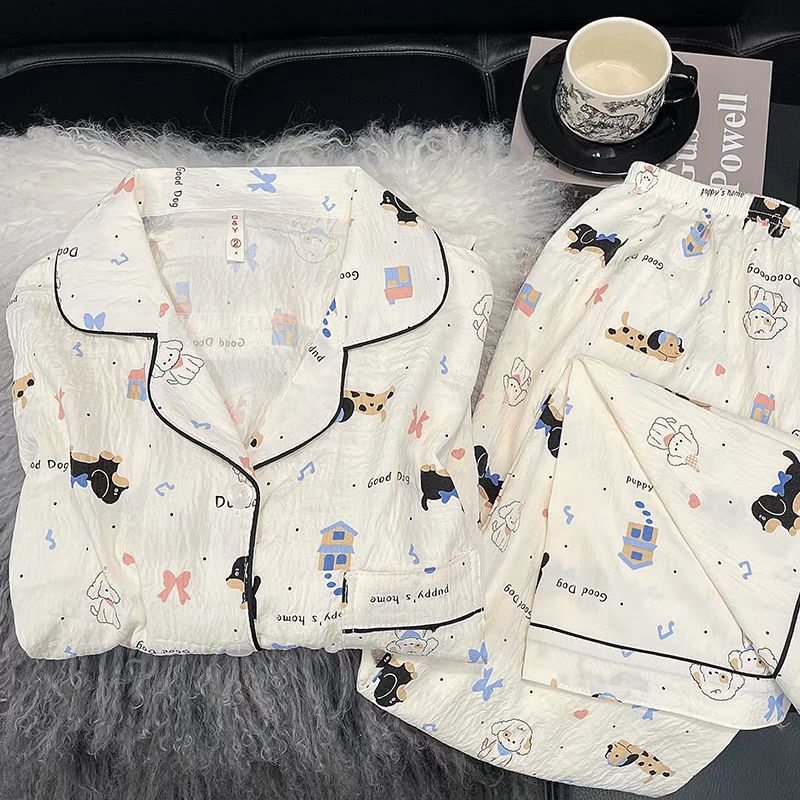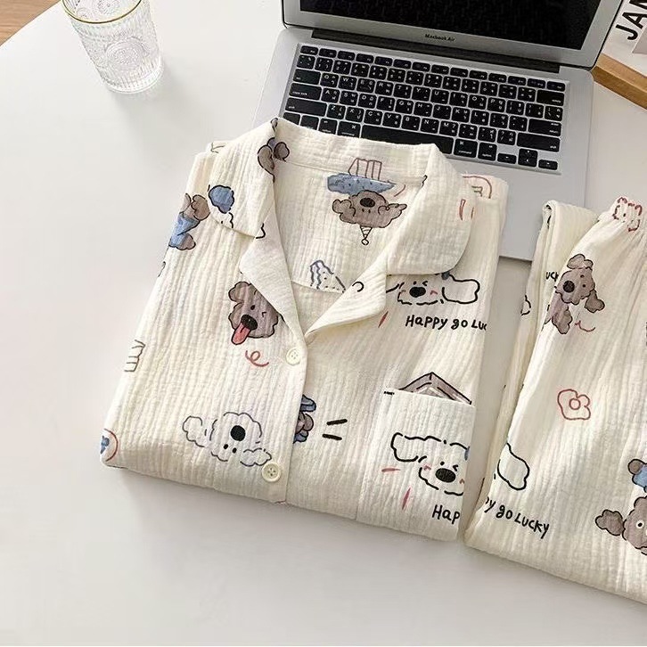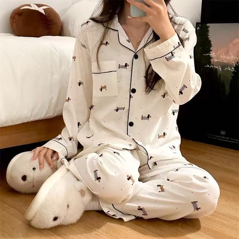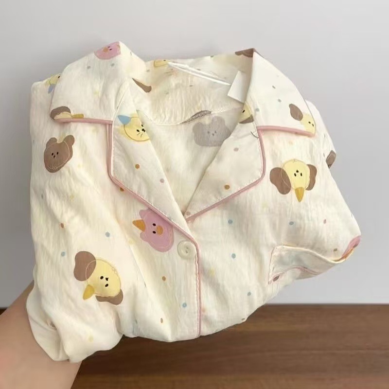 Ins 일본식 만화 곰 잠옷 봄과 가을 여성의 2025 새로운 도착 의상 긴 소매 줄무늬 귀여운 홈 옷스토어 가기