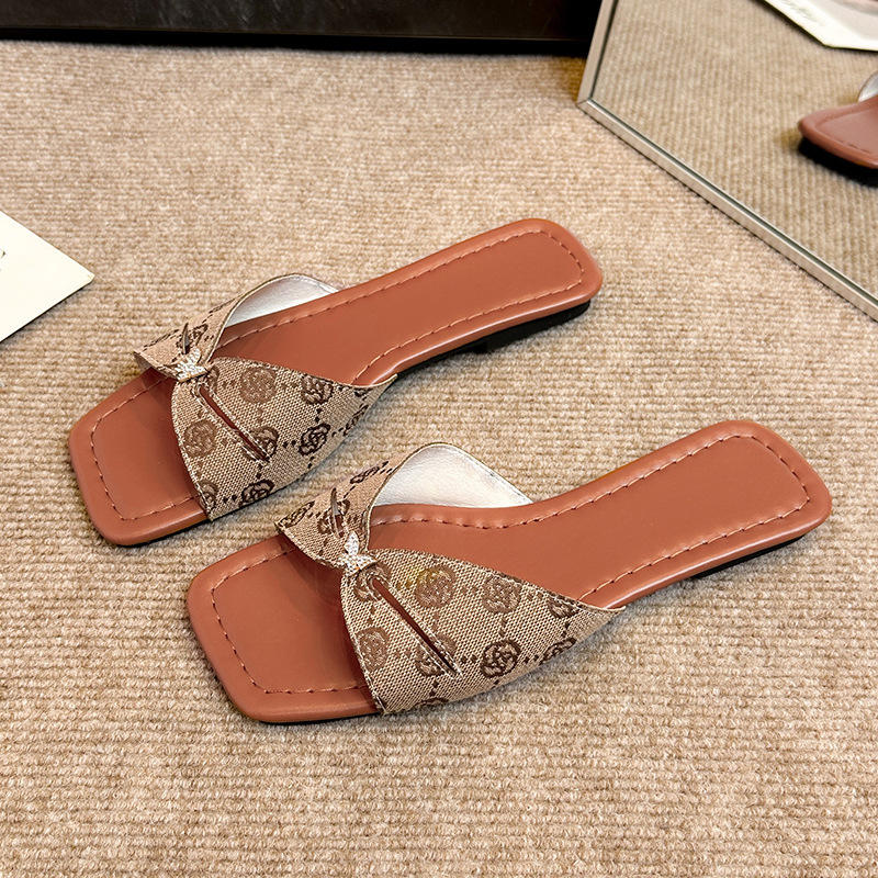 Ins Cross-border 새로운 유럽과 미국의 플러스 사이즈 플랫 바닥 슬리퍼 솔리드 컬러 버클 여성용 두꺼운 바닥 샌들 신발스토어 가기