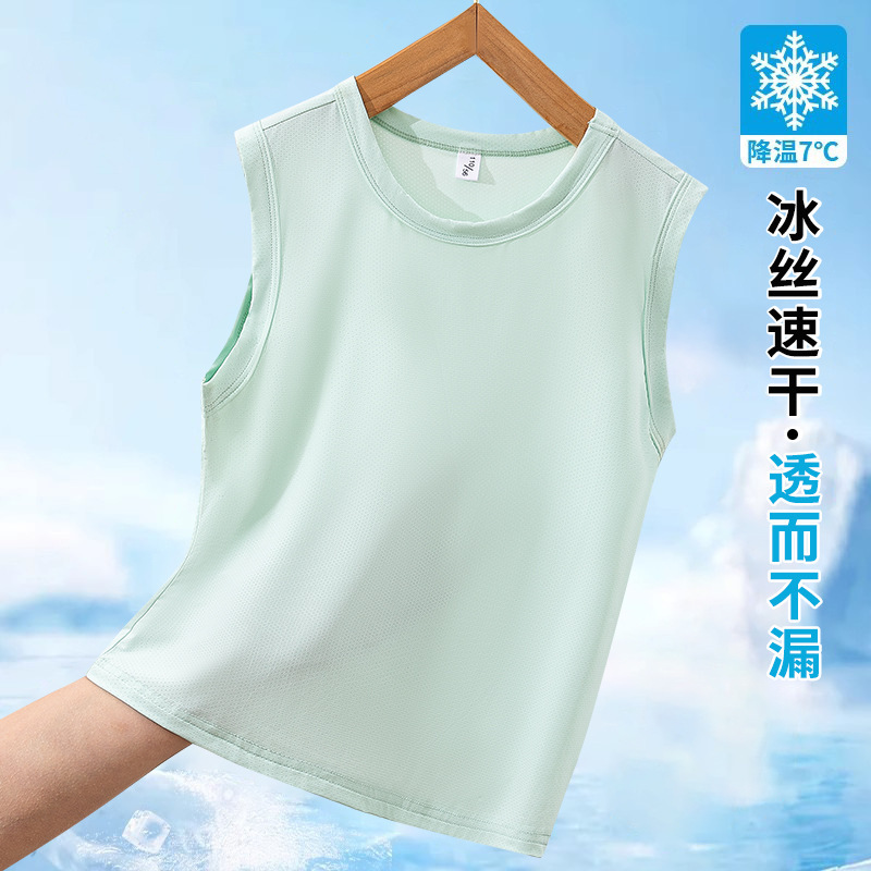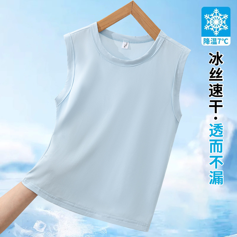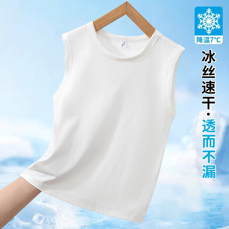 2025 단색 남성 패션 조끼 시원한 느낌 여름 빠른 건조 민소매 소년 조끼 원래 원사 시원한 느낌 수분 흡수 통기성 아이스 실크스토어 가기