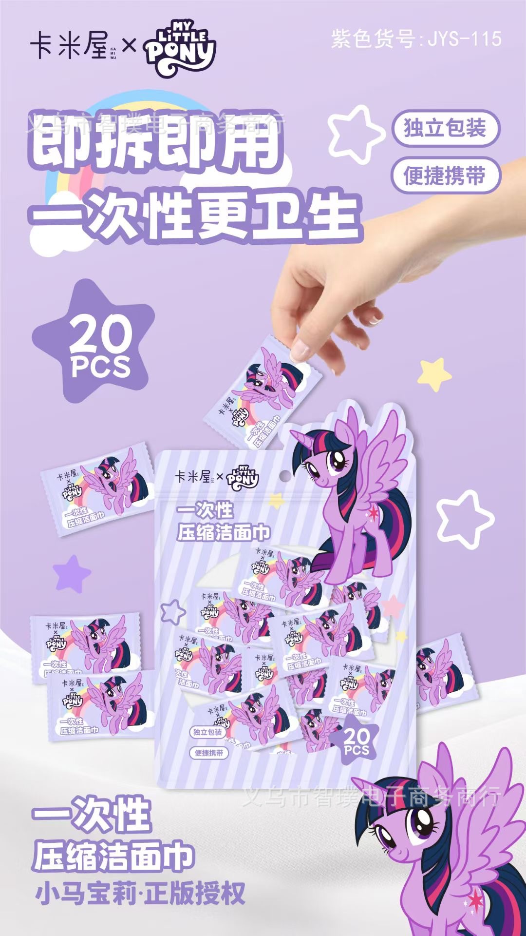 마이 리틀 포니 압축 수건 일회용 대형 면 부드러운 수건 개별 포장 휴대용 목욕 수건 습식 및 건식 사용
