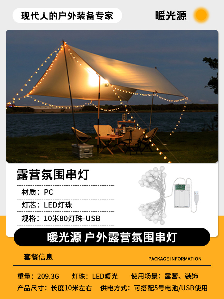 • 10.8m등_프로스트 볼 주변광 스트링(5번 배터리/USB로 직접 사용 가능)