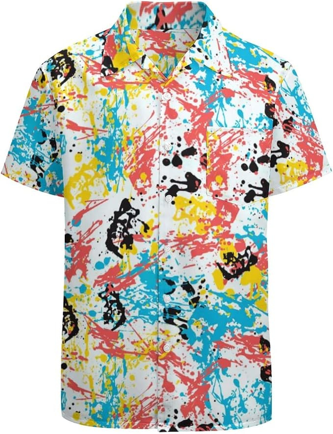 2025년 크로스보더 아마존 봄/여름 남성 상의 남성 캐주얼 반팔 프린트 셔츠 작업복 스포츠 속건