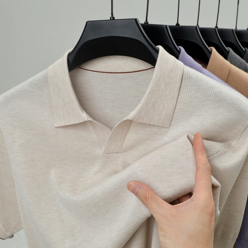 2025 년 여름 반팔 폴로 셔츠 텐셀 100% Lyocell 갈매기 칼라 가위 칼라 넷 에디션 솔리드 컬러 티셔츠 남성스토어 가기