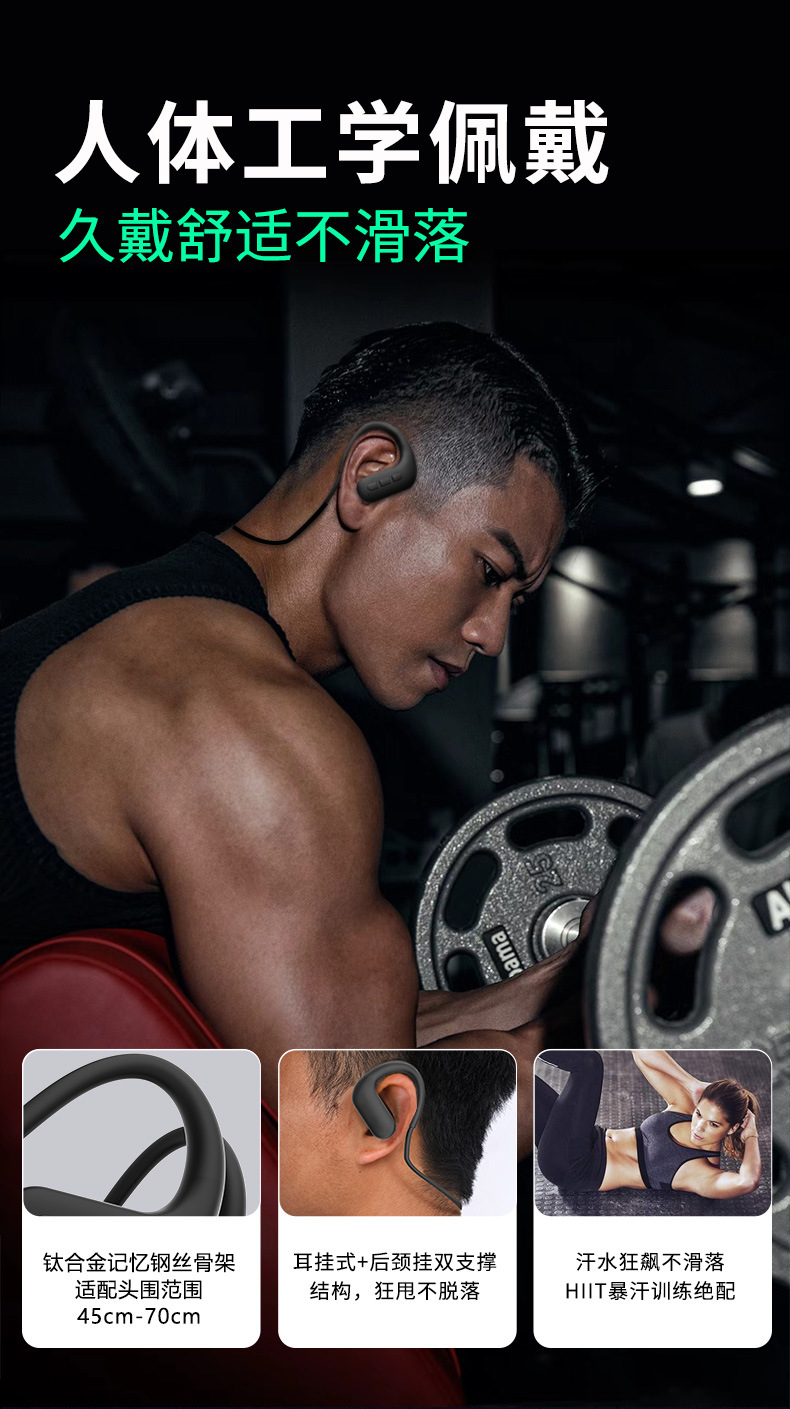 • 딥 스페이스 블랙(골전도 헤드폰 + IP8X 방수 + HIFI 음질 + 자기 고속 충전 + ENC 통화 소음 감소)