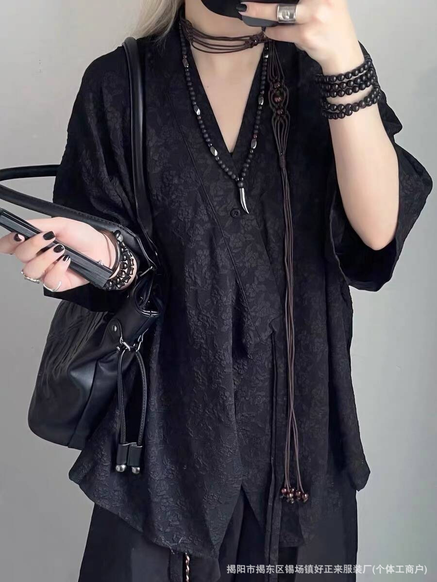 소스 제조 업체 새로운 중국 재킷 3 차원 자카드 스트랩 셔츠 봄 셔츠 2025 새로운 여성 짧은 작은 셔츠스토어 가기