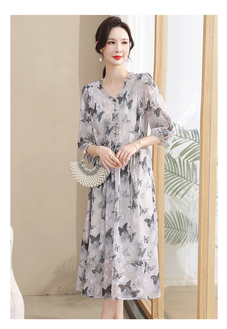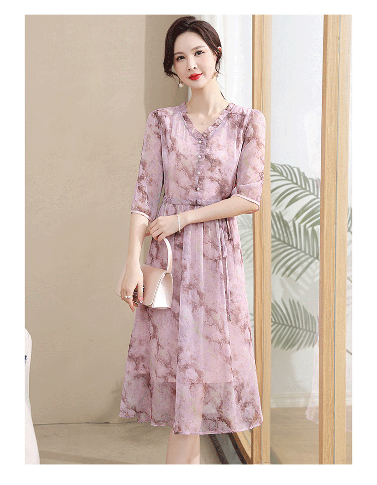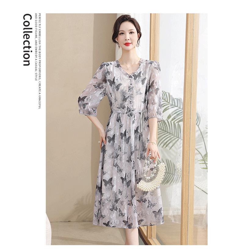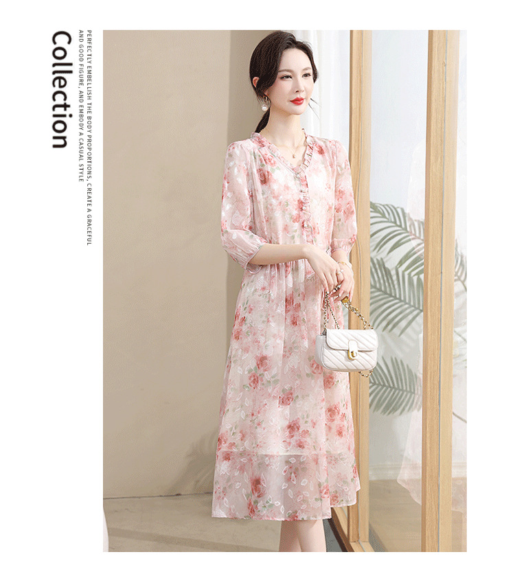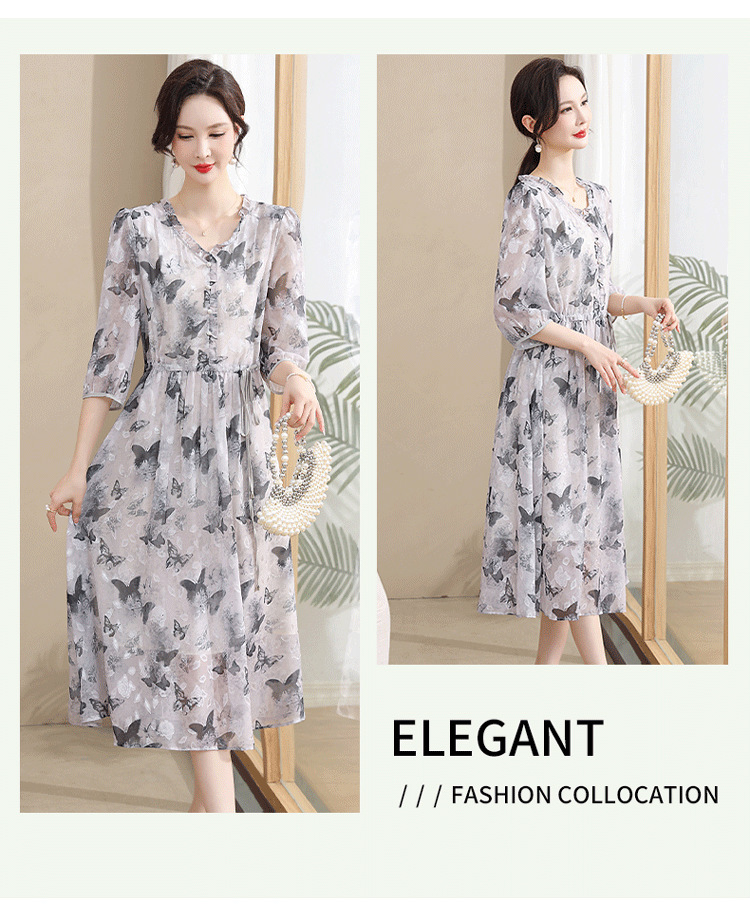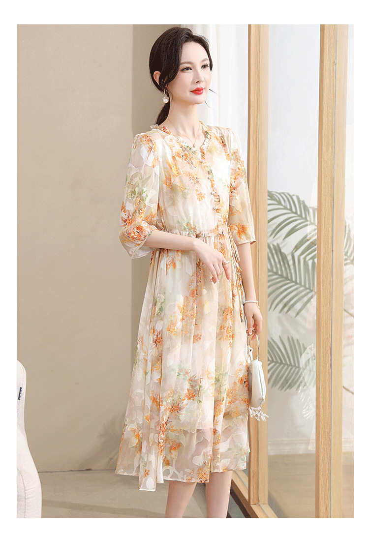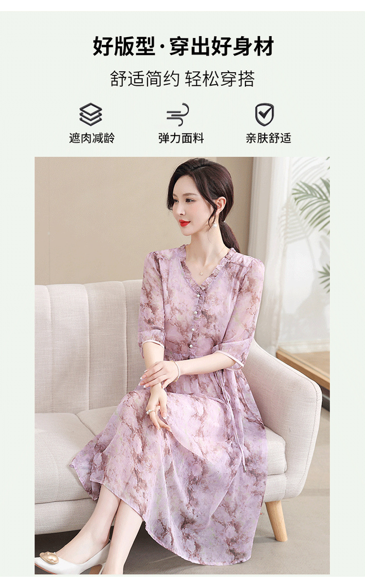 중년 엄마 하이 엔드 플로랄 V 넥 플로랄 스커트 여름 서양식 허리 슬리밍 실크 여성 원피스 뉴스토어 가기