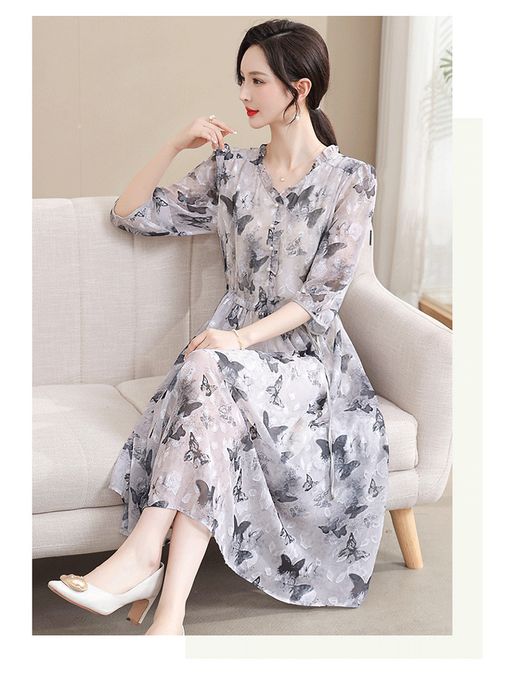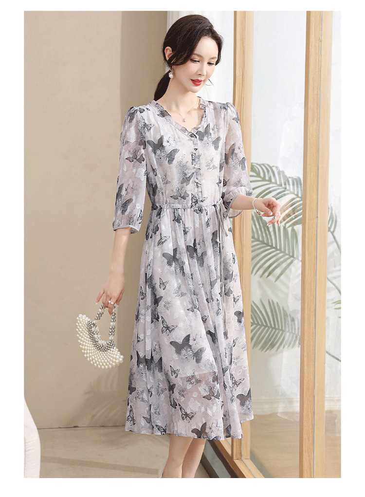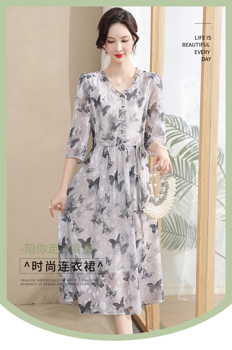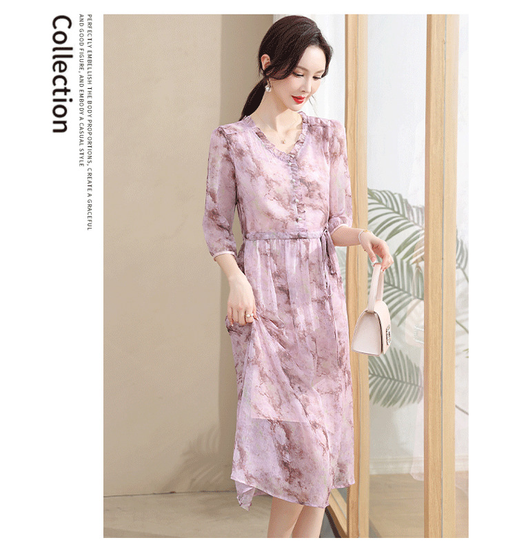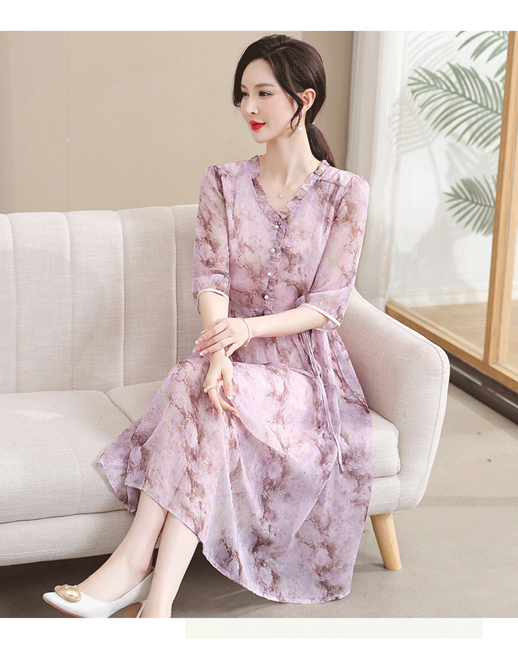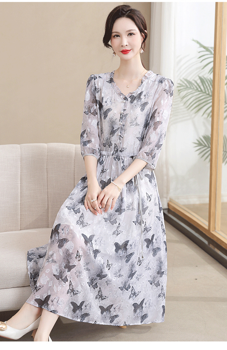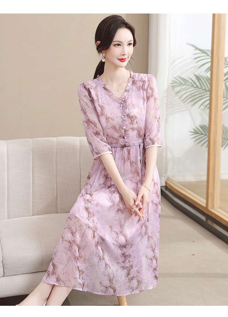 중년 엄마 하이 엔드 플로랄 V 넥 플로랄 스커트 여름 서양식 허리 슬리밍 실크 여성 원피스 뉴스토어 가기