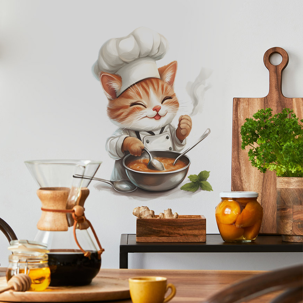 Fun-f564 만화 고양이 요리사 주방 레스토랑 홈 벽 배경 미화 장식 벽 스티커스토어 가기