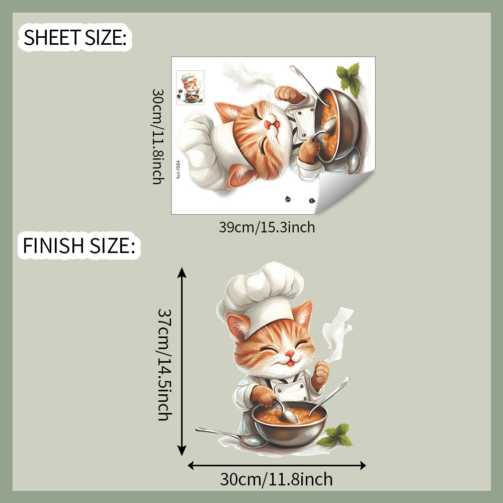 Fun-f564 만화 고양이 요리사 주방 레스토랑 홈 벽 배경 미화 장식 벽 스티커