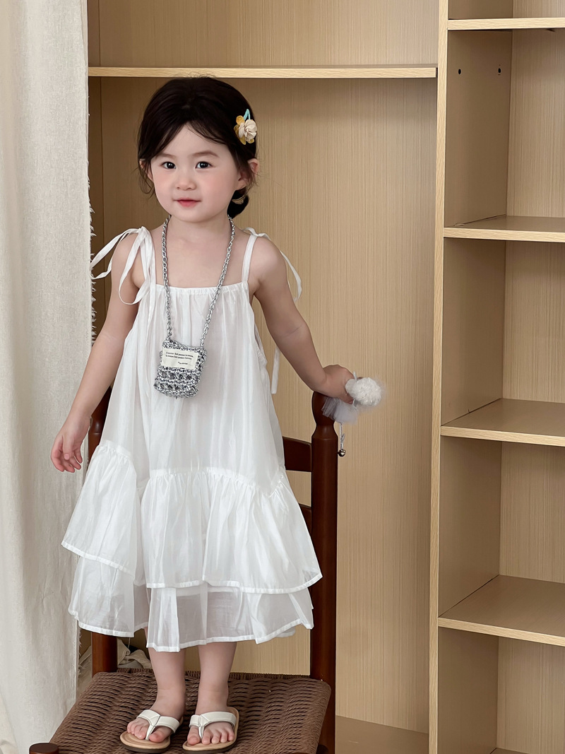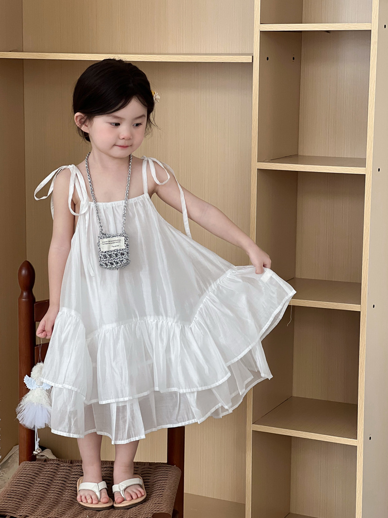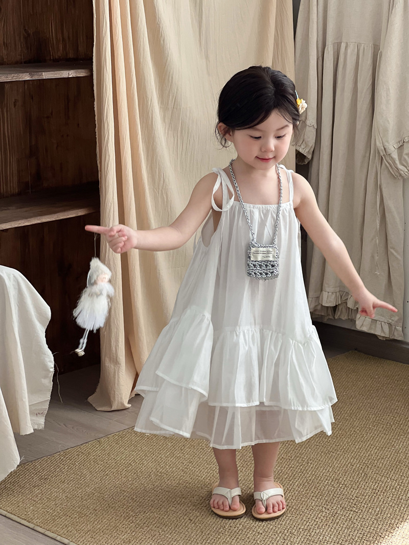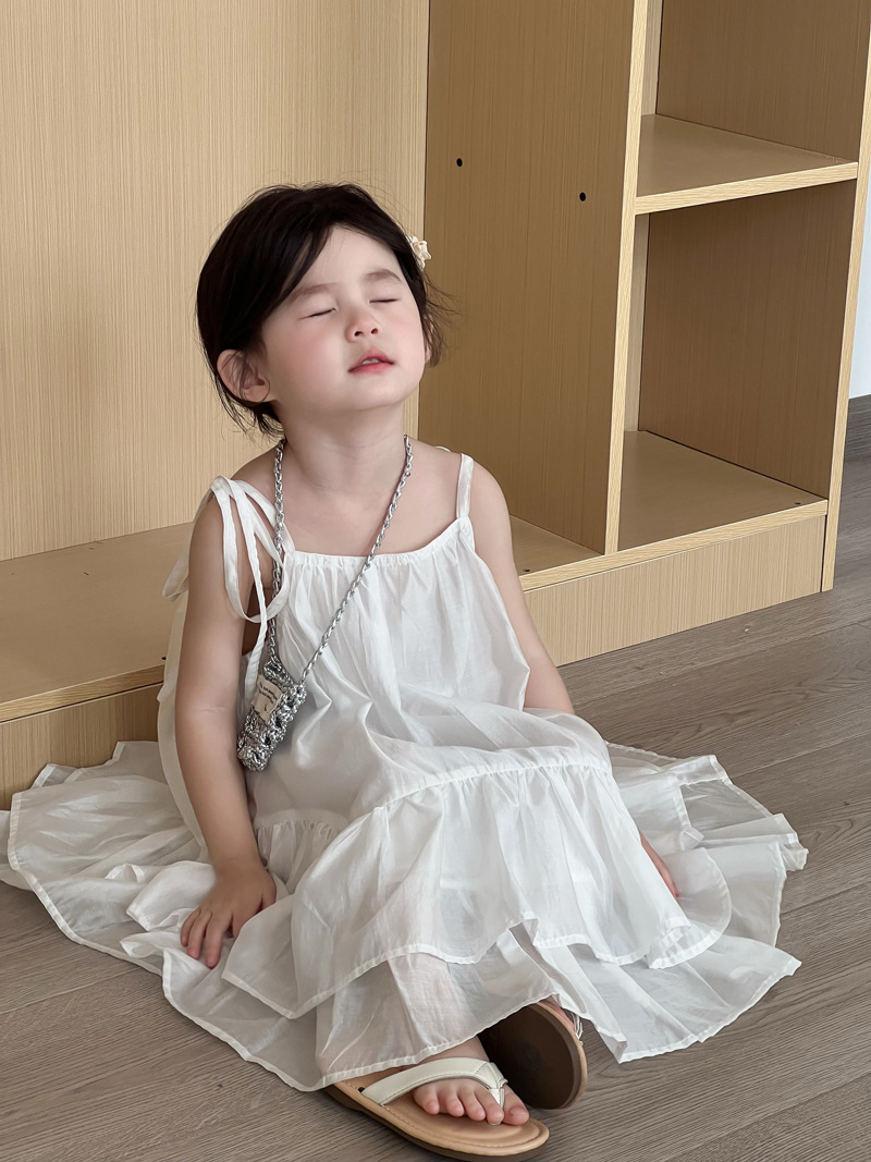 2025 년 여름 새 어린이 치마 한국 스타일 소녀 러플 헴 원피스 어린이 여름 한국 스타일 슬링 스커트