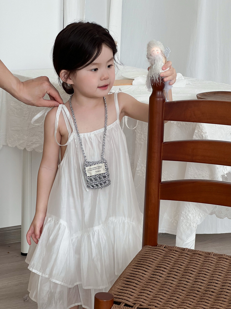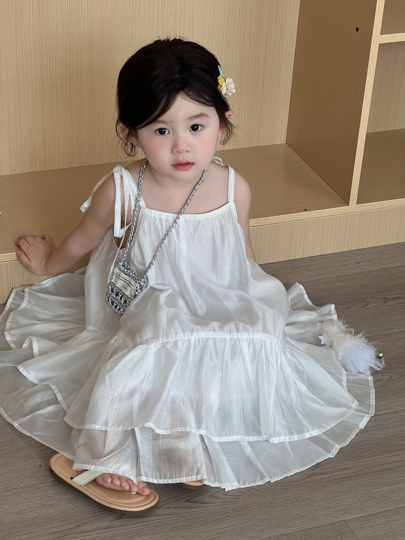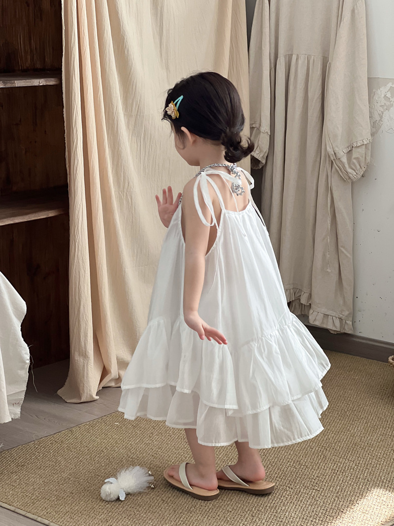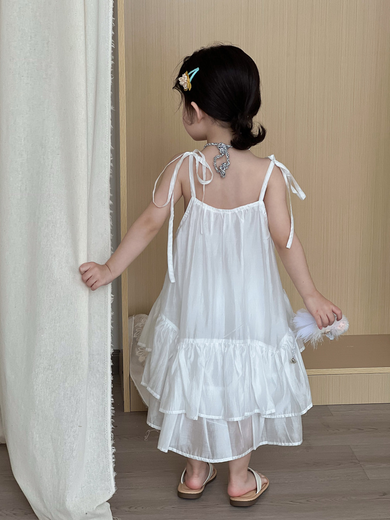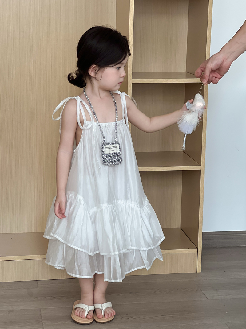 2025 년 여름 새 어린이 치마 한국 스타일 소녀 러플 헴 원피스 어린이 여름 한국 스타일 슬링 스커트