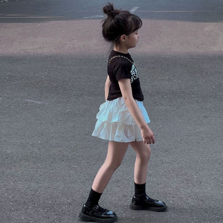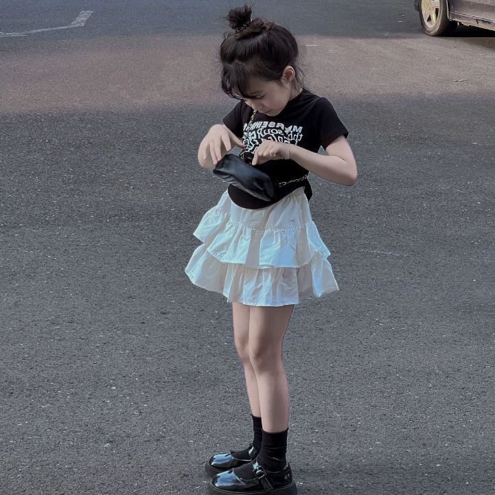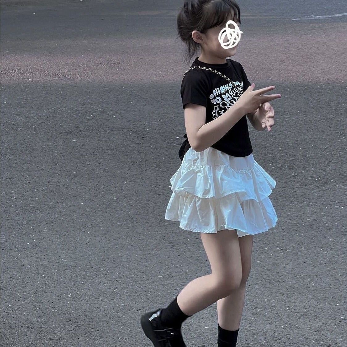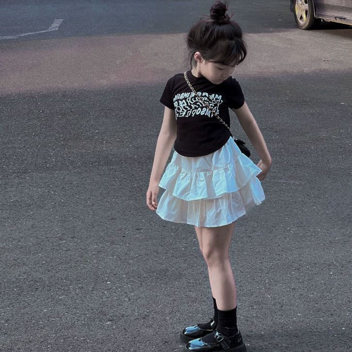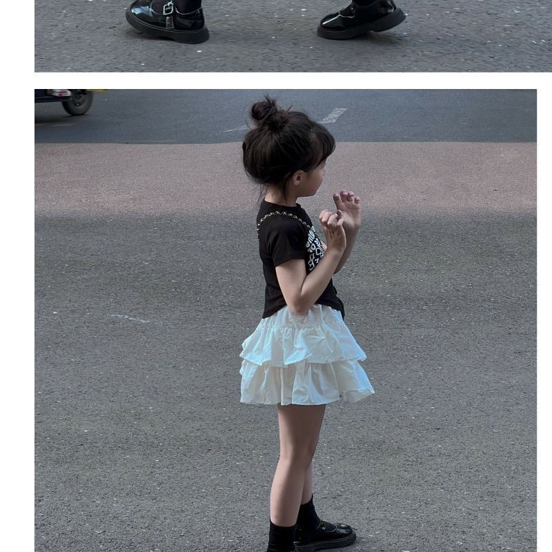 여자 여름 세트 2025 새로운 세련된 어린이 반팔 티셔츠 소녀 유행 케이크 스커트 투피스 여름 원피스스토어 가기