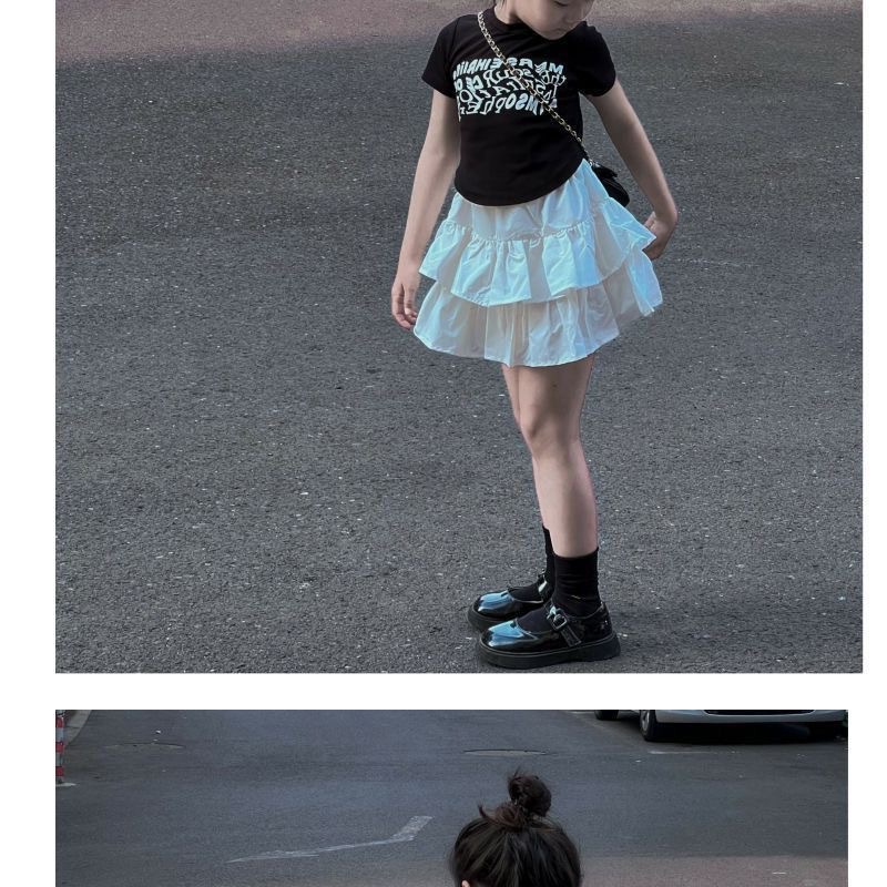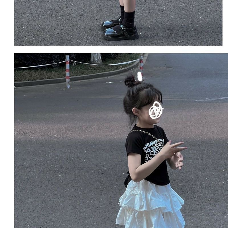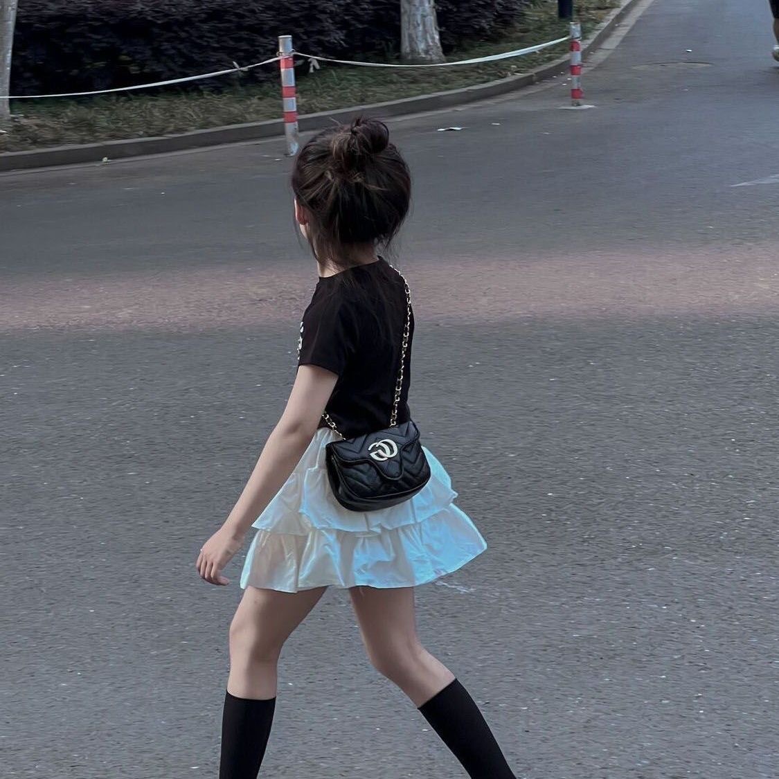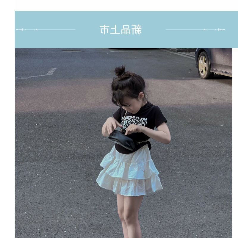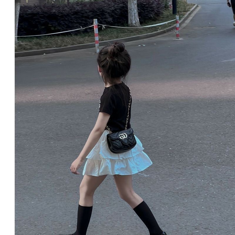 여자 여름 세트 2025 새로운 세련된 어린이 반팔 티셔츠 소녀 유행 케이크 스커트 투피스 여름 원피스스토어 가기