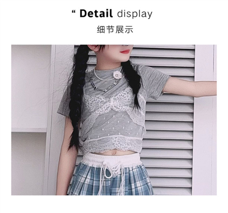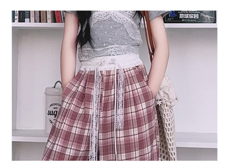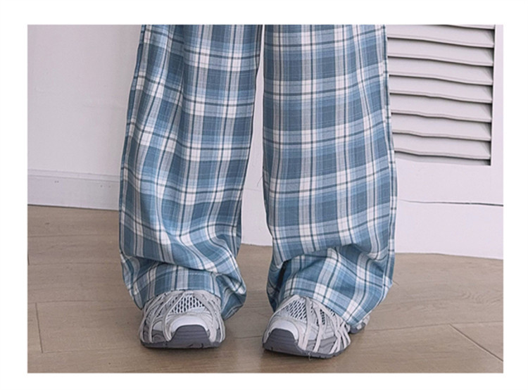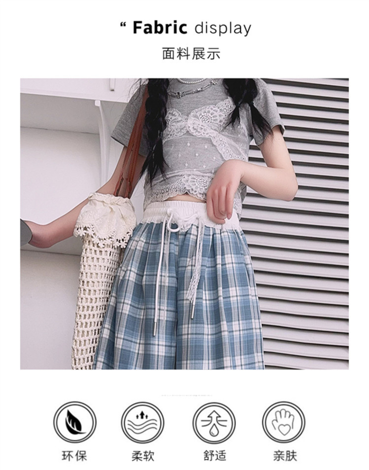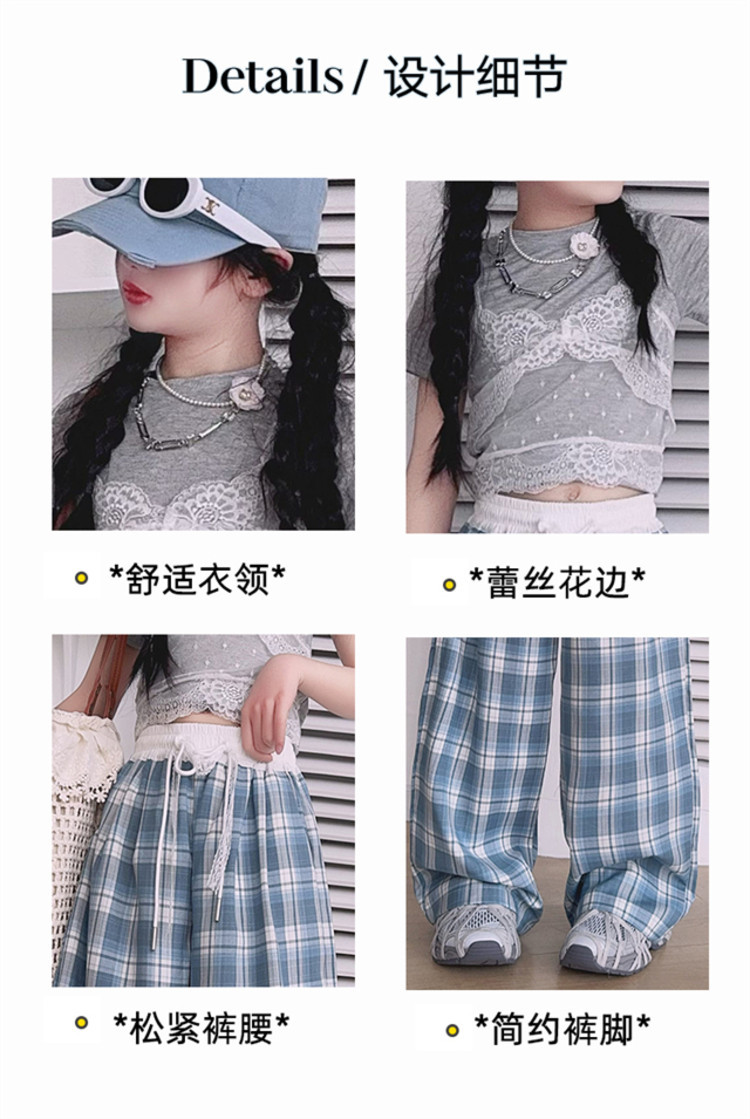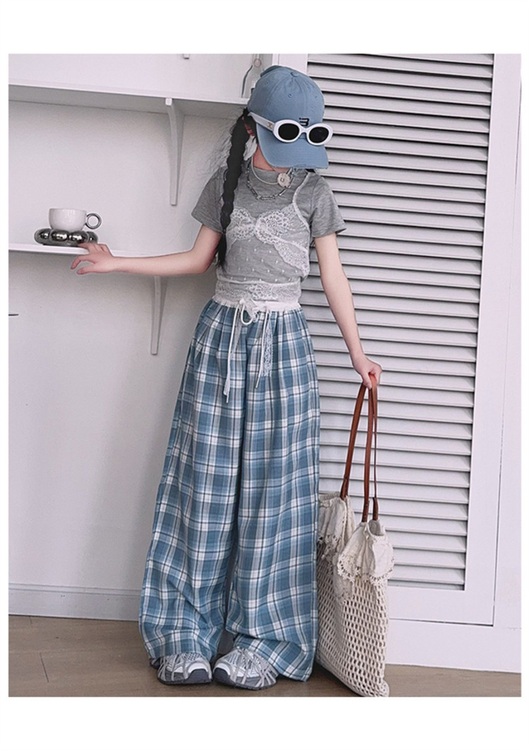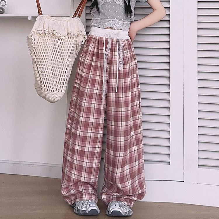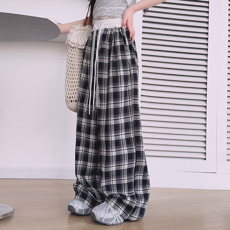 소녀의 봄과 여름 바지 2025 새로운 도착 중대형 어린이 격자 무늬 느슨한 넓은 다리 바지 유행 세련된 와이드 다리 바지스토어 가기
