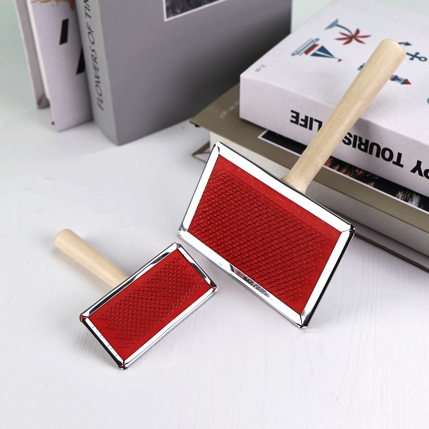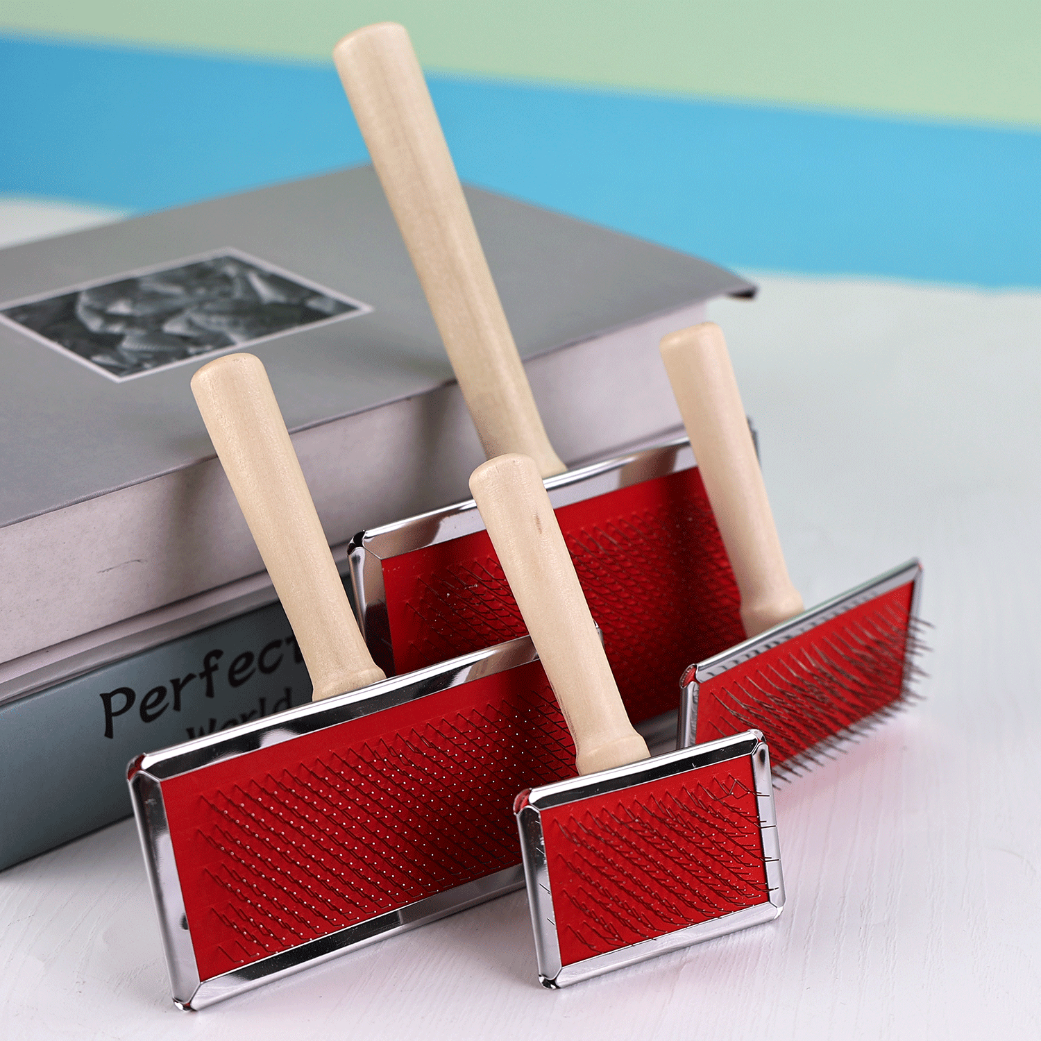 제조업체 애완 동물 나무 손잡이 바늘 빗 스테인레스 스틸 밀 바늘 빗 제모 빗 고양이와 개 머리 매듭 미용 마사지 빗