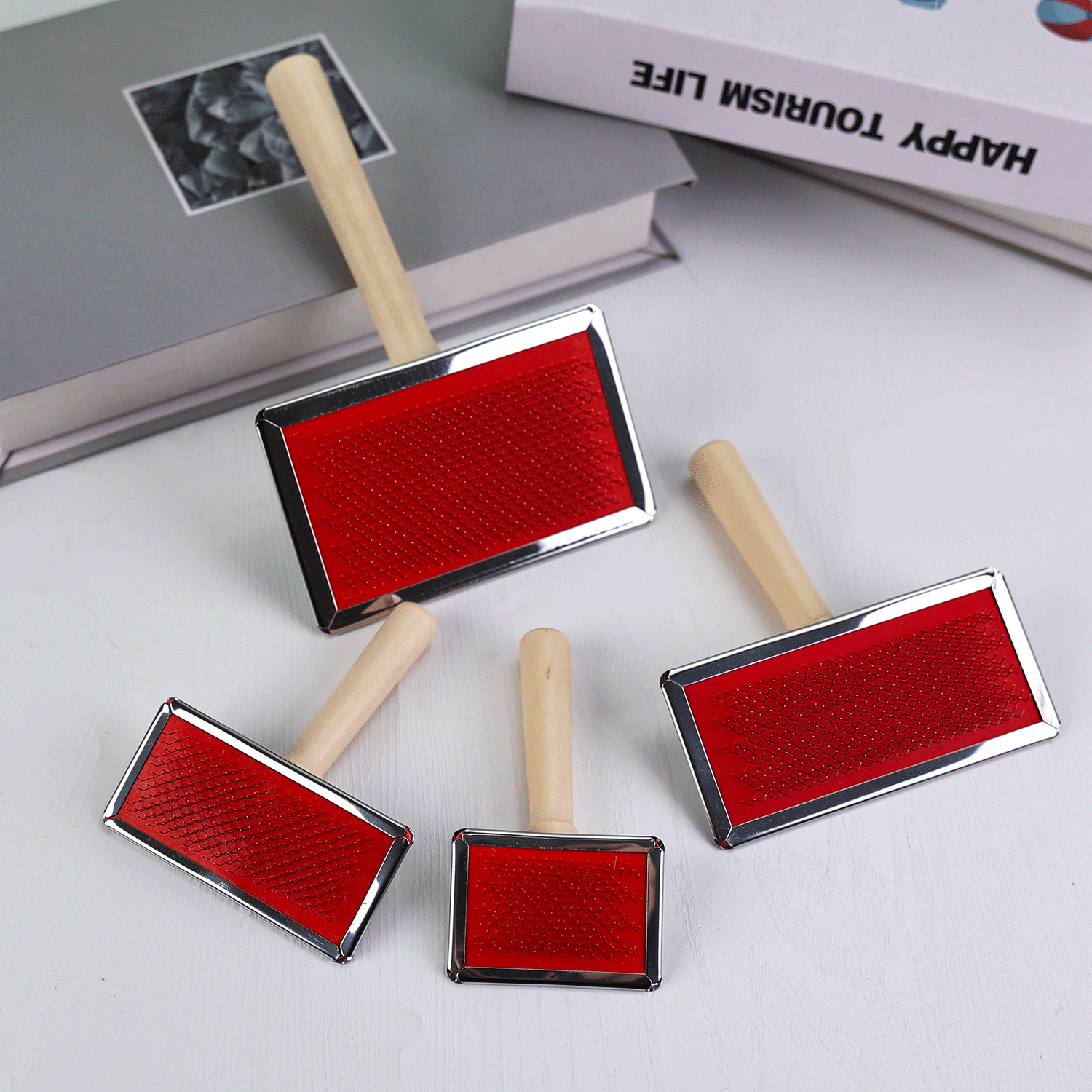 제조업체 애완 동물 나무 손잡이 바늘 빗 스테인레스 스틸 밀 바늘 빗 제모 빗 고양이와 개 머리 매듭 미용 마사지 빗스토어 가기