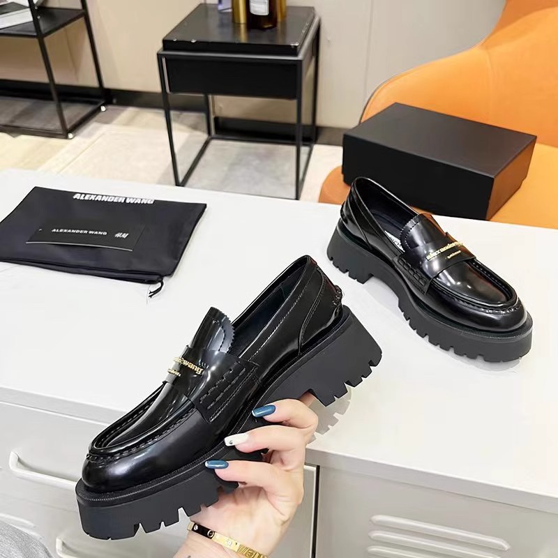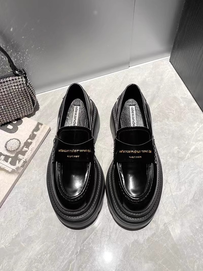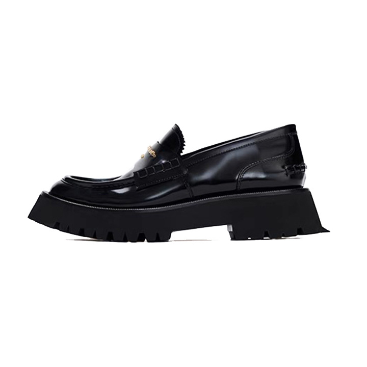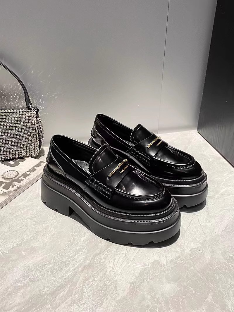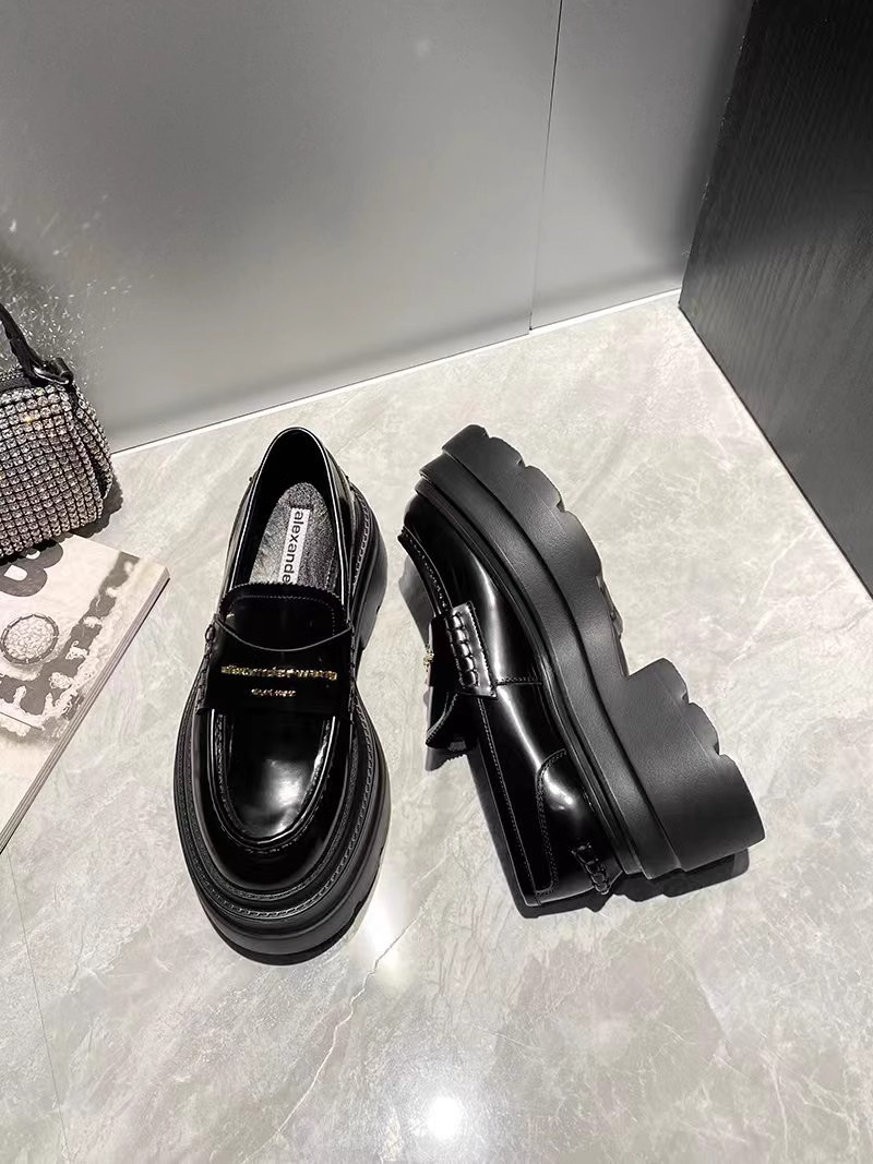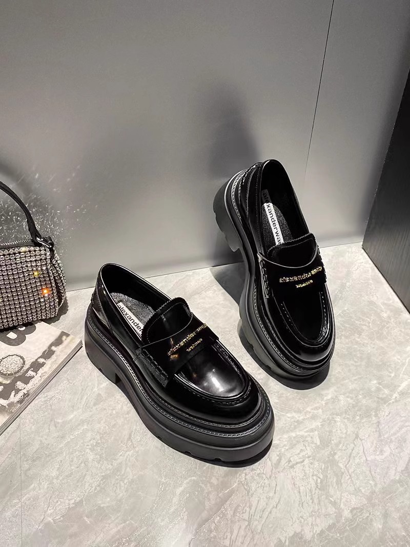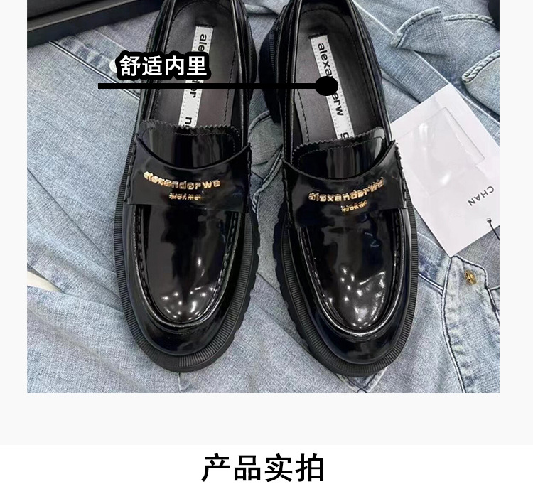 AW 두꺼운 밑창 로퍼, 패셔너블하고 활용도가 높은 라운드 토 블랙 스몰 가죽 슈즈, 두꺼운 굽, 편안하고 심플한 데일리 슈즈