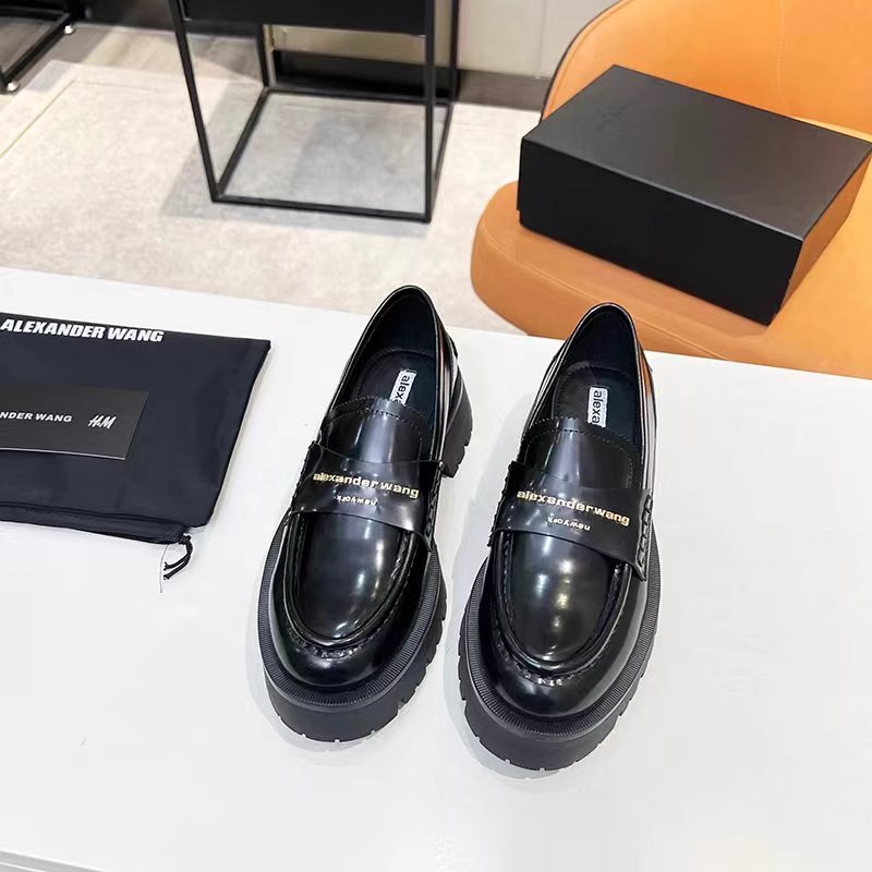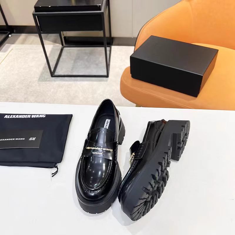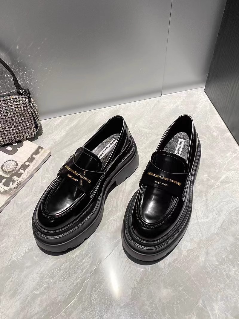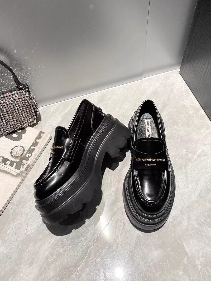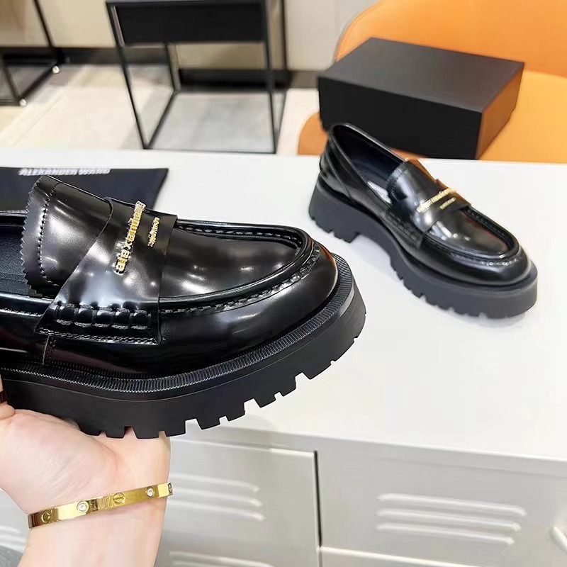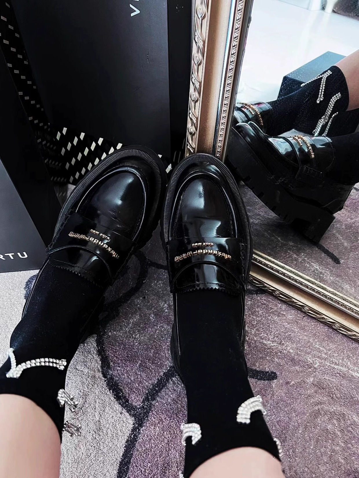 AW 두꺼운 밑창 로퍼, 패셔너블하고 활용도가 높은 라운드 토 블랙 스몰 가죽 슈즈, 두꺼운 굽, 편안하고 심플한 데일리 슈즈