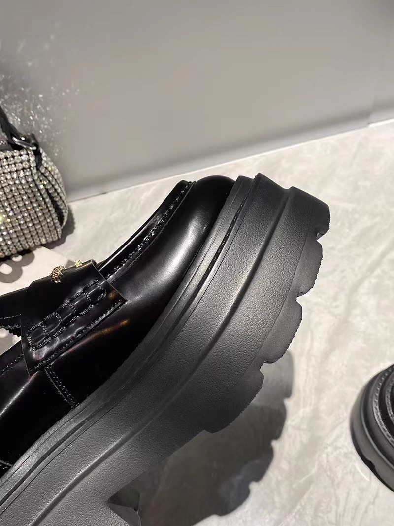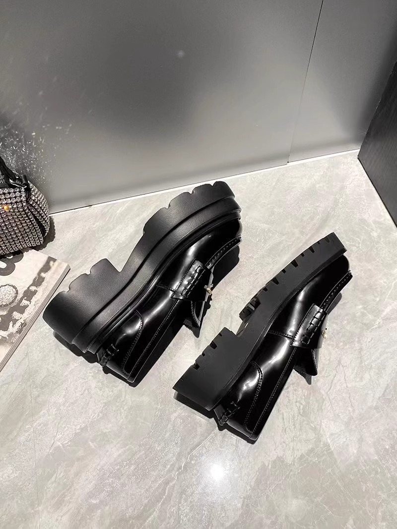 AW 두꺼운 밑창 로퍼, 패셔너블하고 활용도가 높은 라운드 토 블랙 스몰 가죽 슈즈, 두꺼운 굽, 편안하고 심플한 데일리 슈즈스토어 가기
