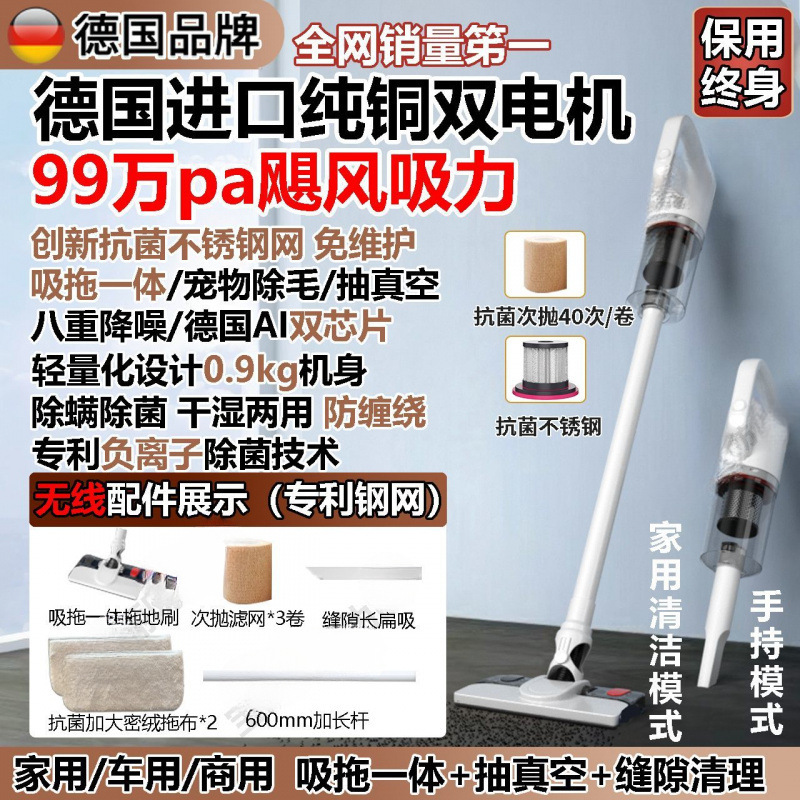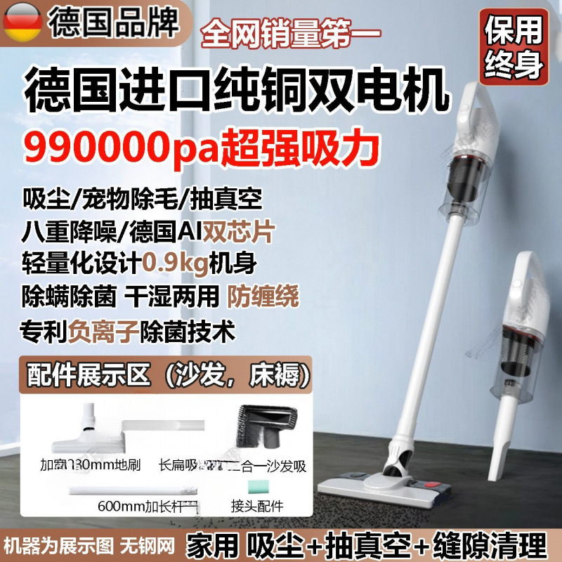 독일 무선 진공 청소기, 높은 흡입력, 가정용 자동차 휴대용 초저소음 진드기 제거 애완동물 흡입 및 걸레 일체형 기계스토어 가기