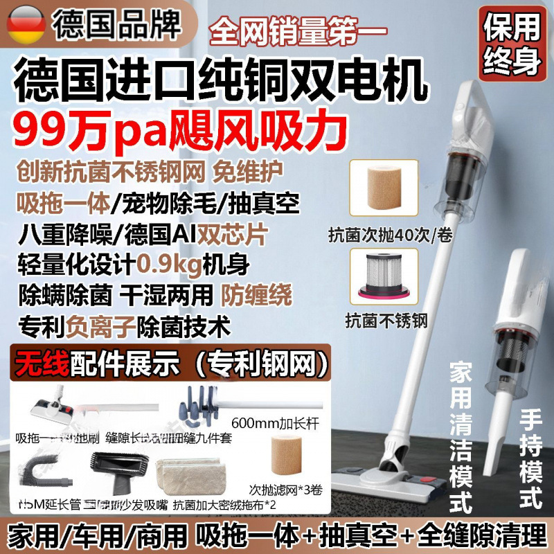독일 무선 진공 청소기, 높은 흡입력, 가정용 자동차 휴대용 초저소음 진드기 제거 애완동물 흡입 및 걸레 일체형 기계