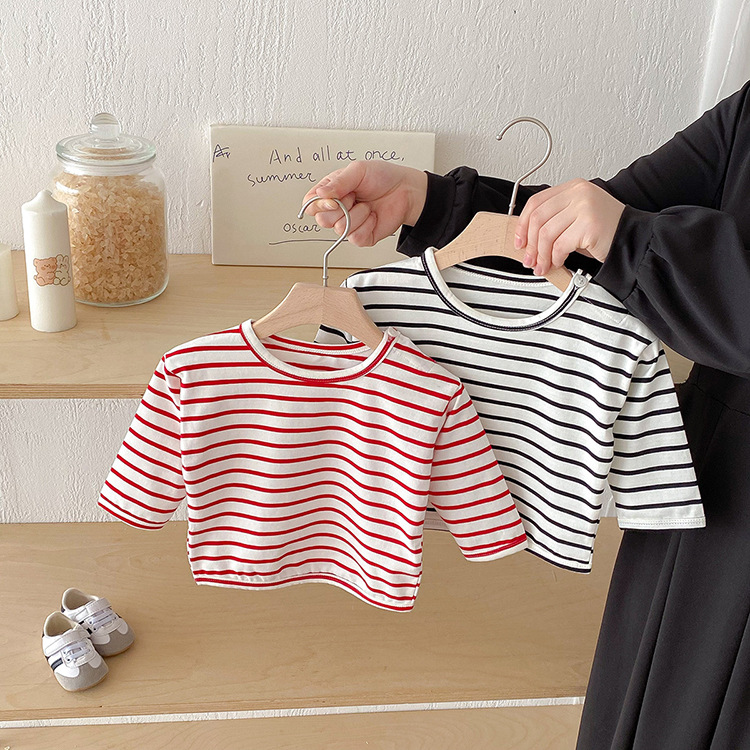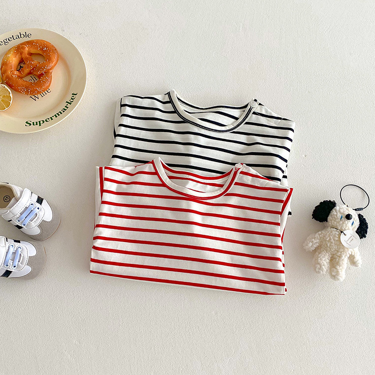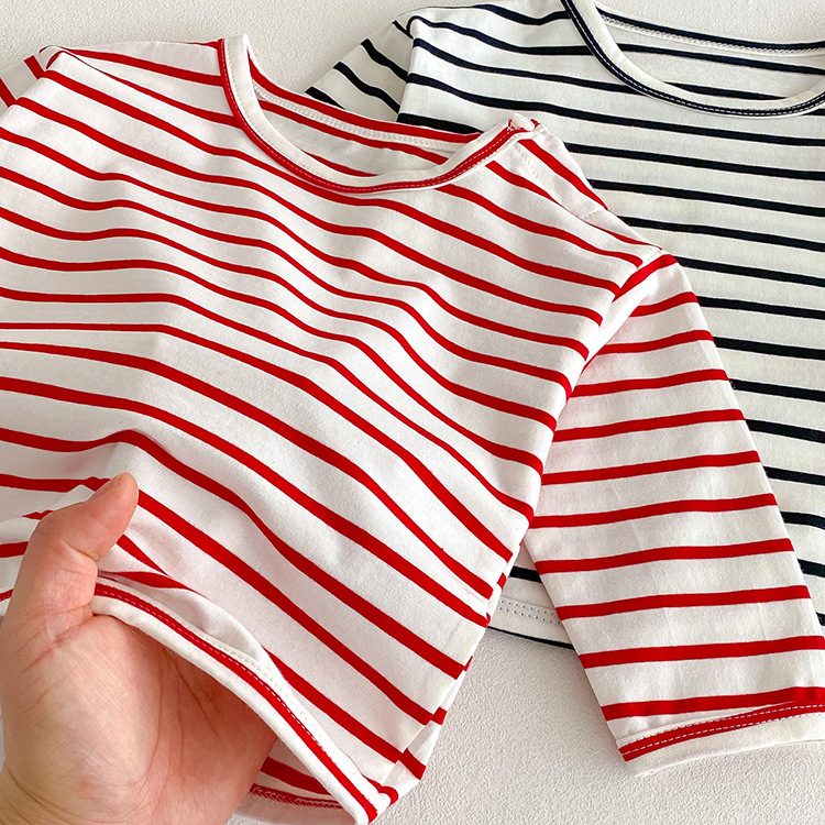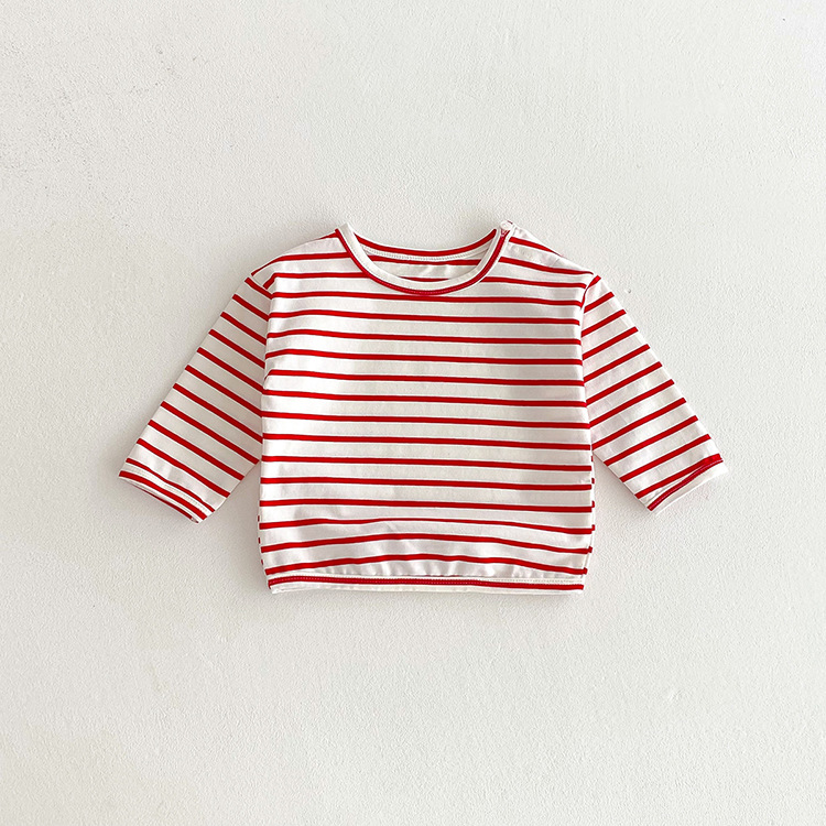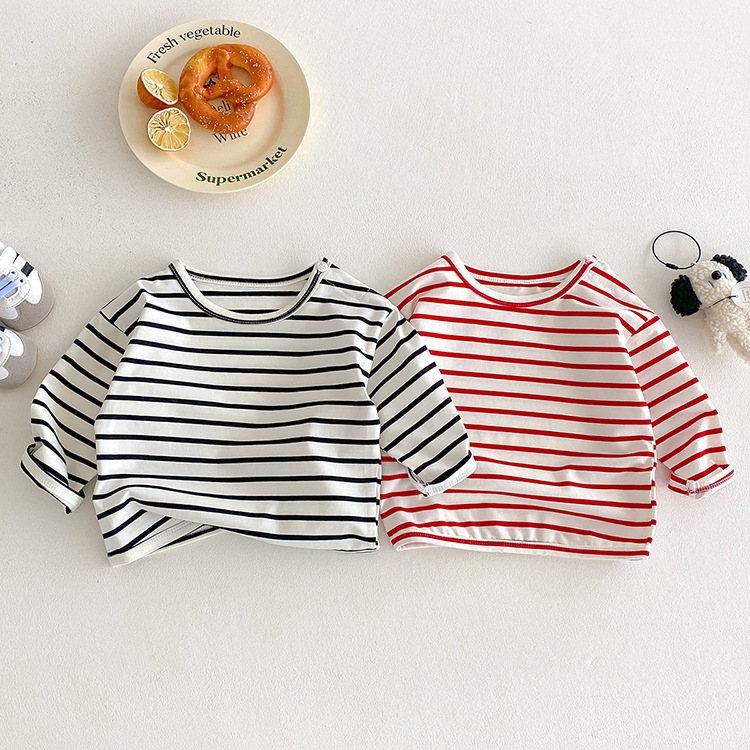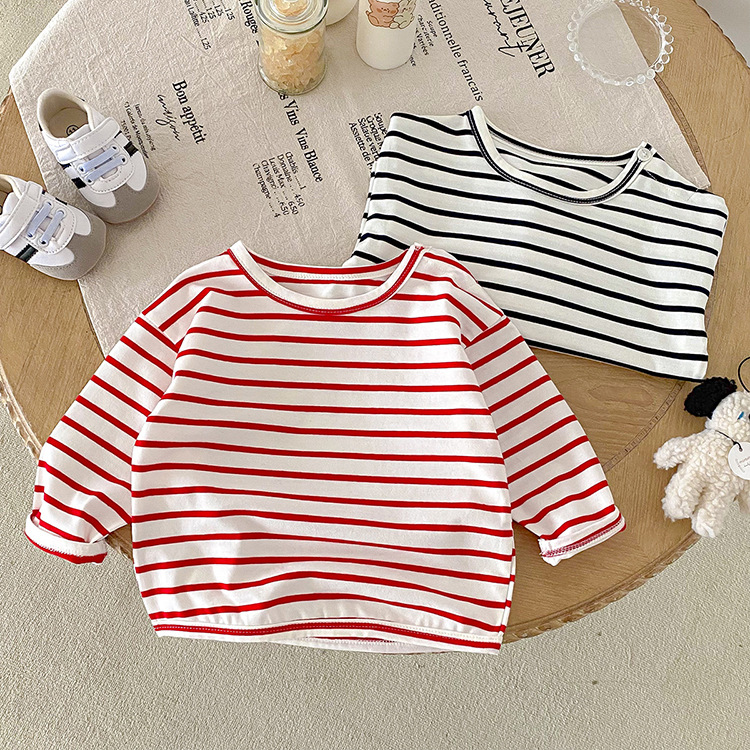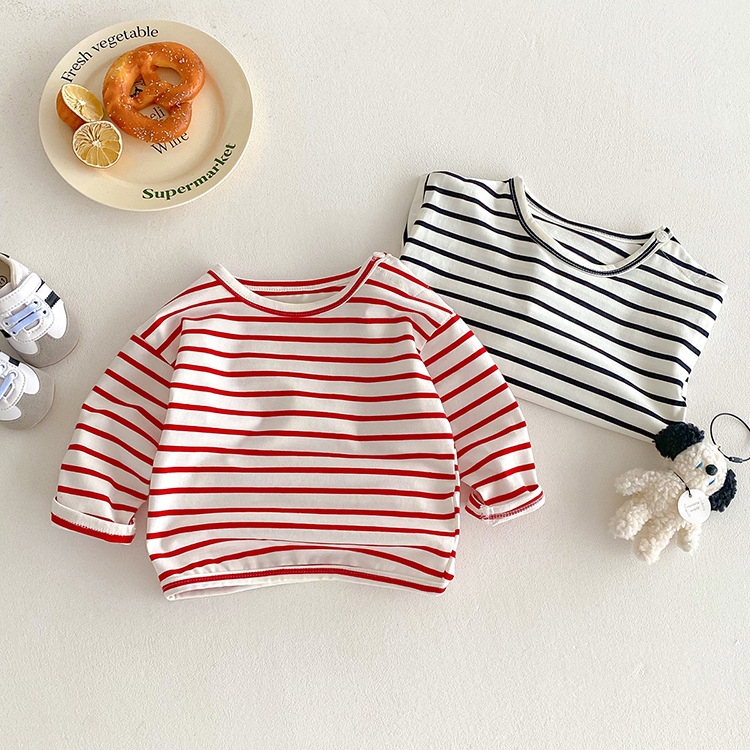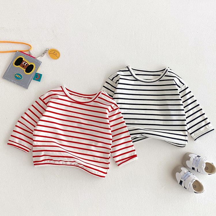 봄 어린이 기지 셔츠 소년 소녀를위한 어린이 줄무늬 긴팔 탑 봄과 가을을위한 아기의 내부 캐주얼 옷스토어 가기