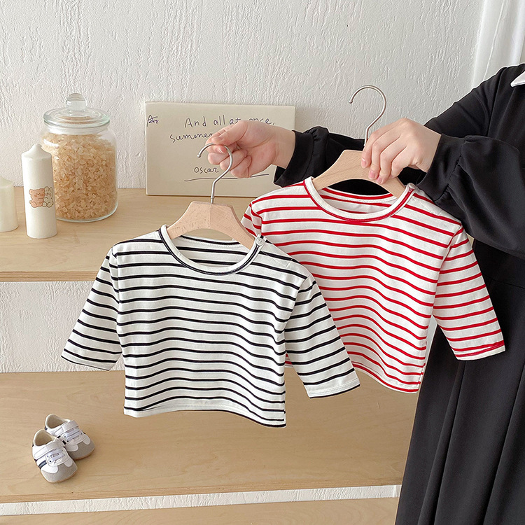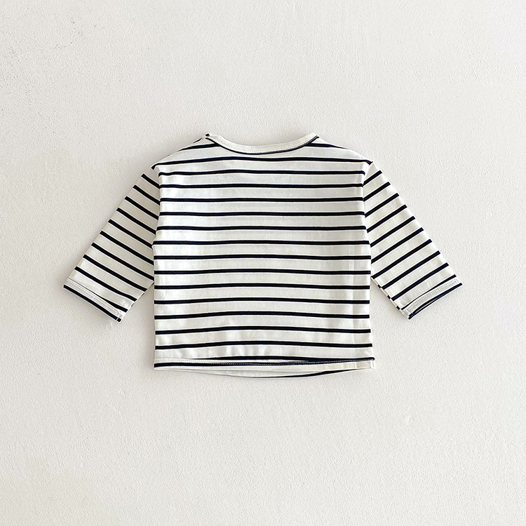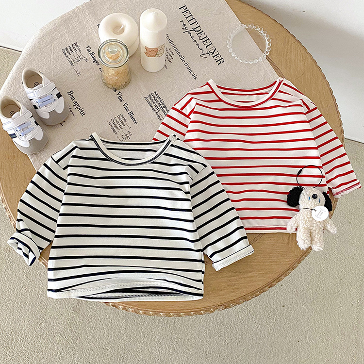 봄 어린이 기지 셔츠 소년 소녀를위한 어린이 줄무늬 긴팔 탑 봄과 가을을위한 아기의 내부 캐주얼 옷