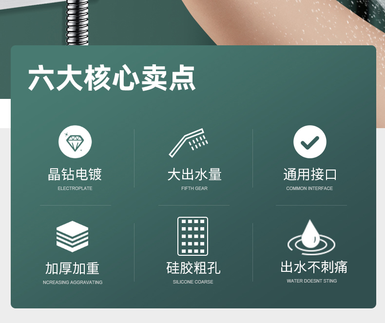 • [업그레이드된 3단 샤워기] 전기도금된 은-실리콘 배수구