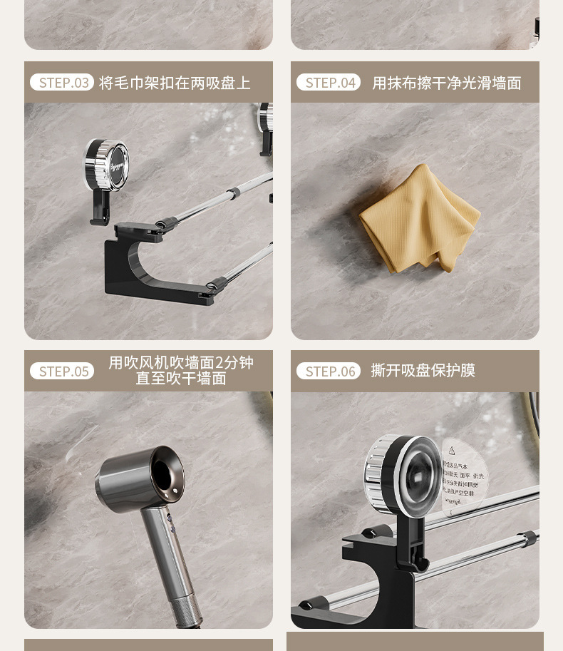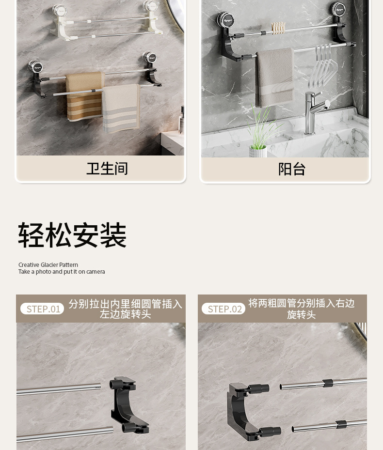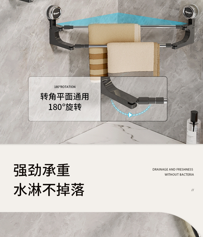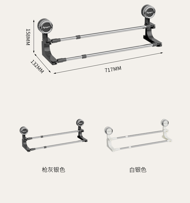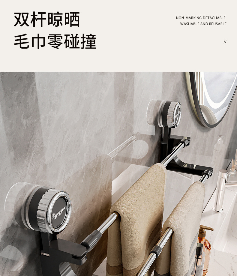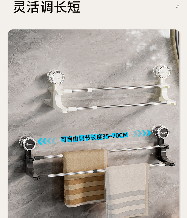 흡입 컵 이중 막대 회전식 수건 걸이 복고풍 텔레스코픽 목욕 수건 보관함 욕실 펀치없는 벽걸이 형 보관 막대