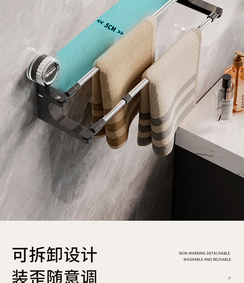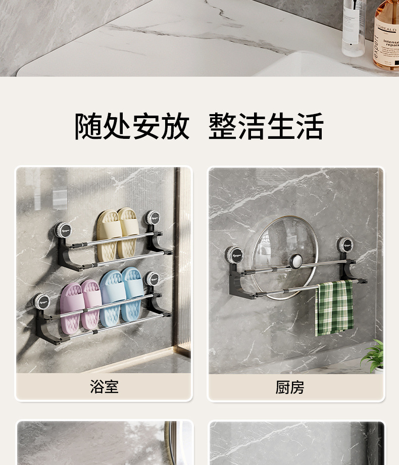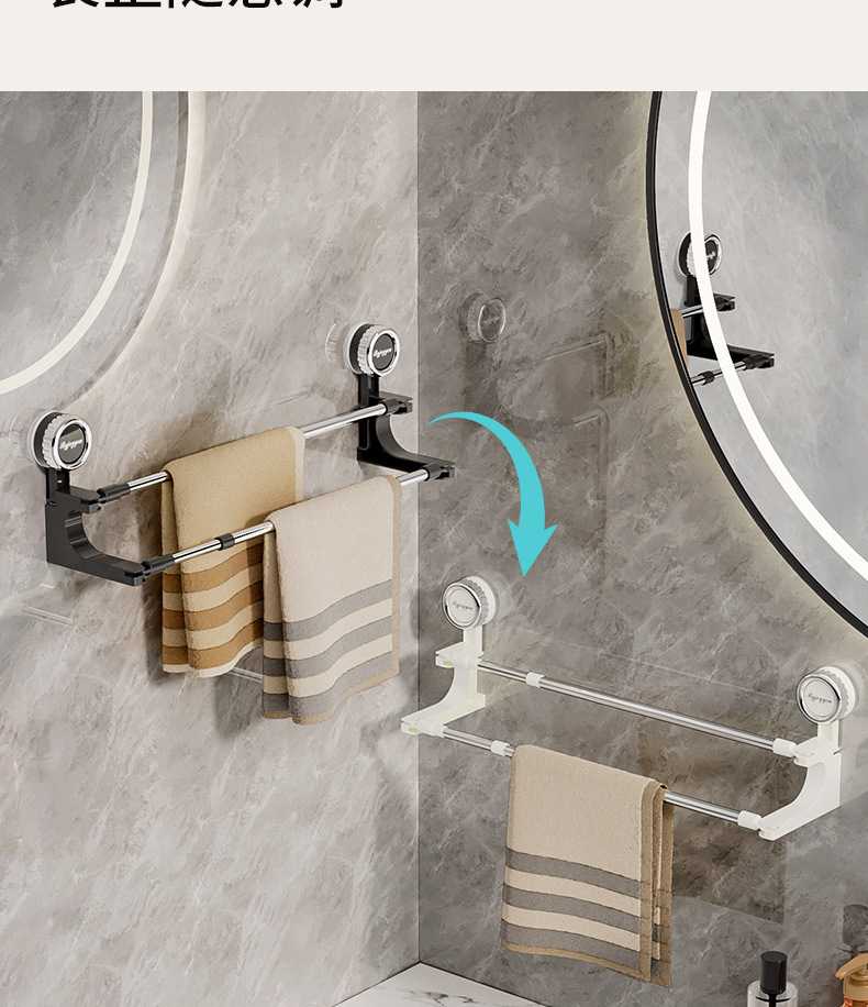 흡입 컵 이중 막대 회전식 수건 걸이 복고풍 텔레스코픽 목욕 수건 보관함 욕실 펀치없는 벽걸이 형 보관 막대스토어 가기