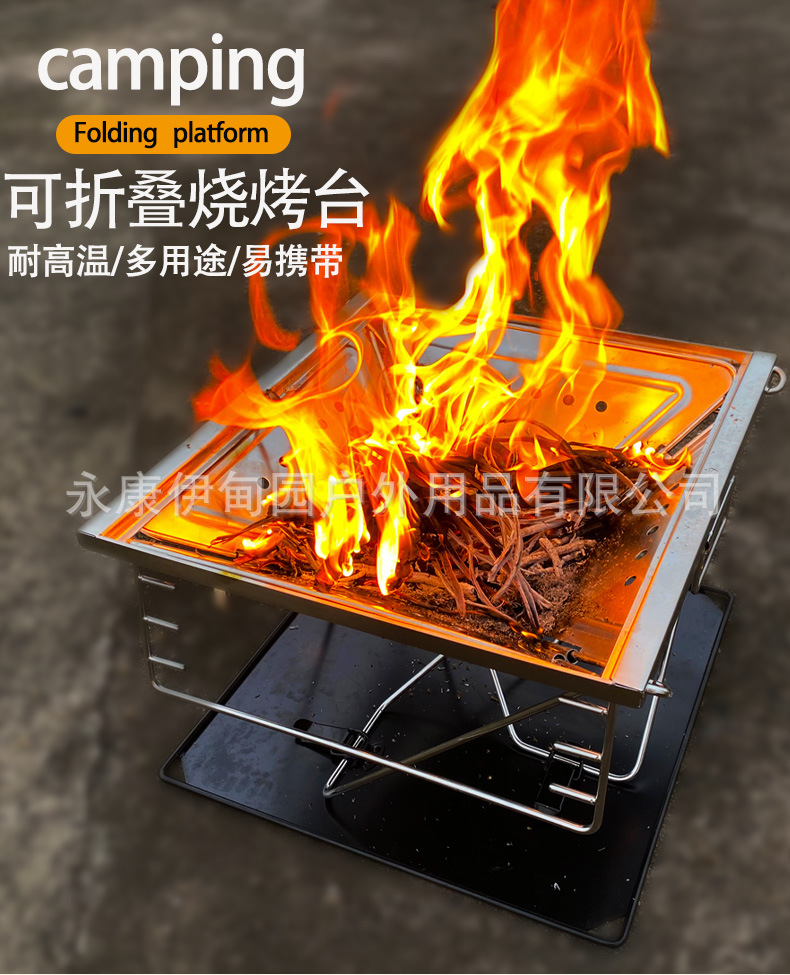 야외 캠핑 모닥불 스토브 스테인레스 스틸 모닥불 테이블 휴대용 접이식 모닥불 스토브 주변 모닥불 차 화로 바베큐 그릴스토어 가기