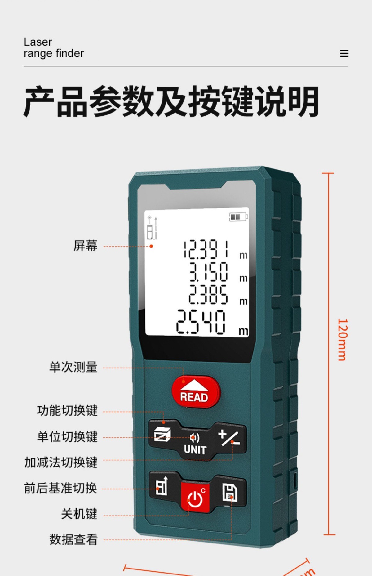• 그린라이트 블루투스 버전 80m [음성 + 리튬 배터리 + 블루투스 룸 측정 앱 + 전자 각도 + 2.4inch 대형 화면]