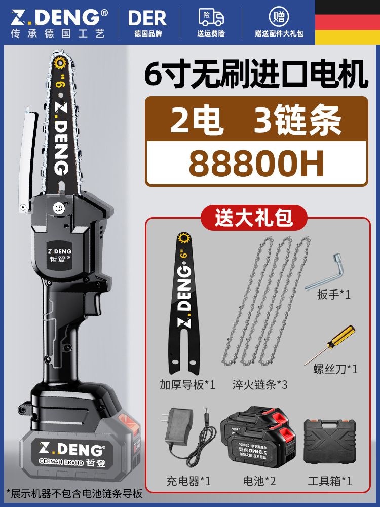 독일 Zedeng 전기 벌목 톱 가정용 소형 휴대용 전기 톱 목재 리튬 배터리 충전식 야외 체인 톱